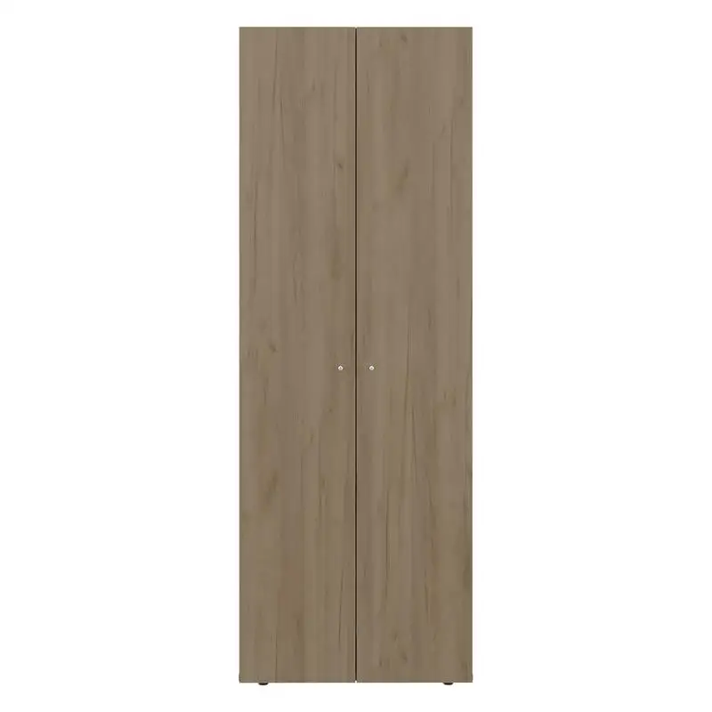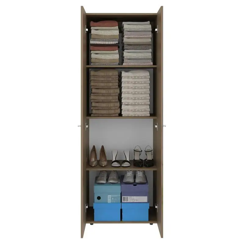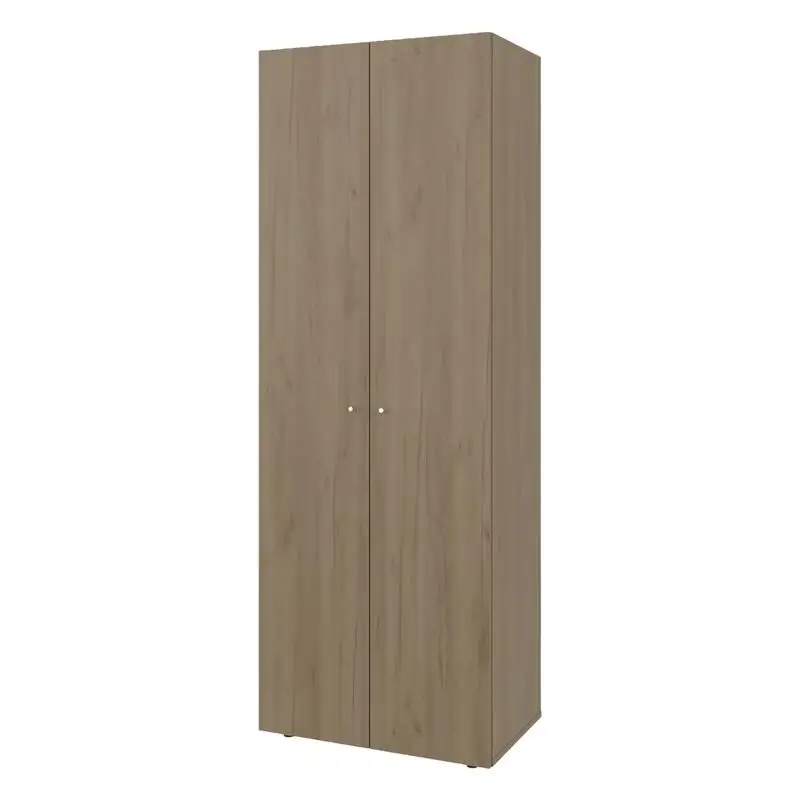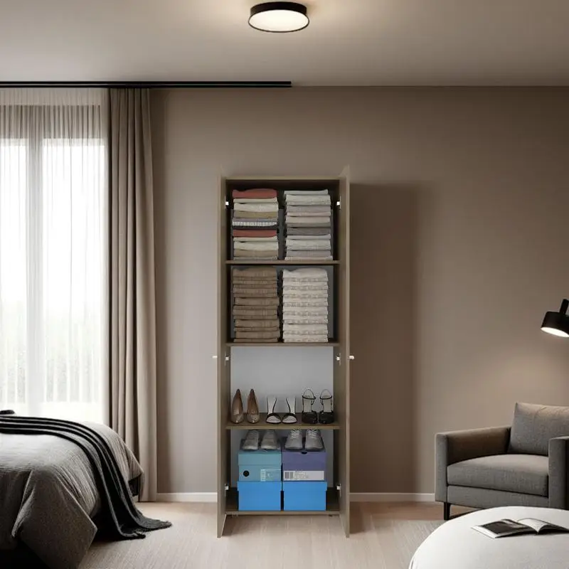 2-Door Tall Wardrobe Cabinet with 4 Shelves, Vertical Storage, 66.9" High, Natural Oak Finish, Ideal for Bedroom Organization