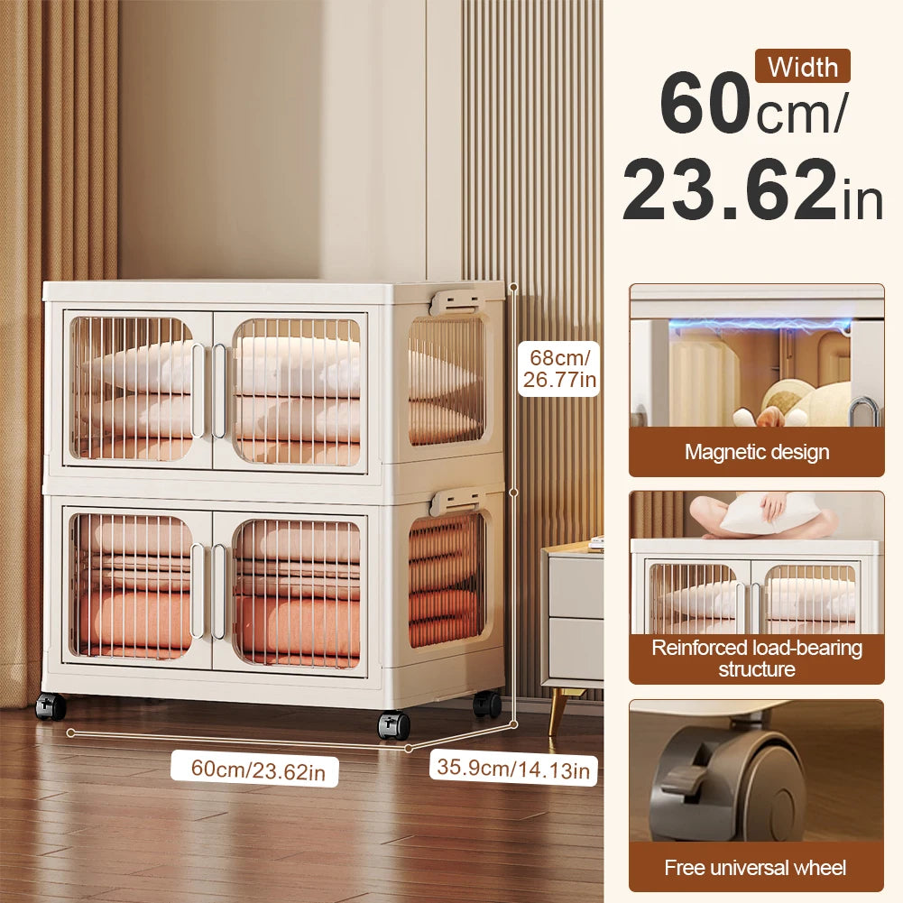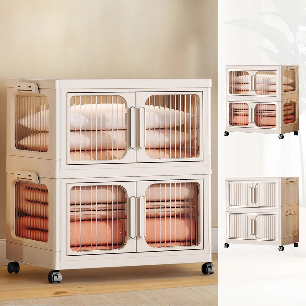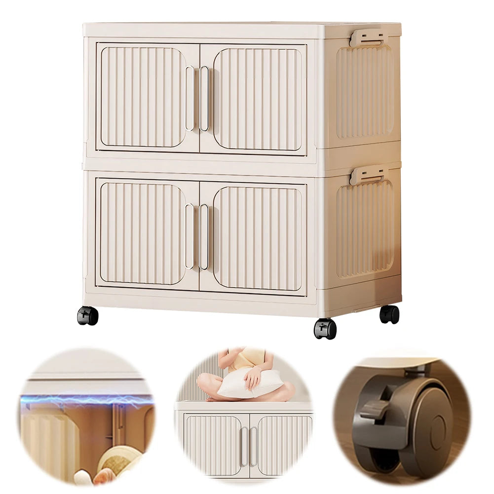 2-Layer Foldable Closet Large Capacity Clothes Wardrobe Anti-Slip Home Storage Organizer for Books Clothes Small Gadgets