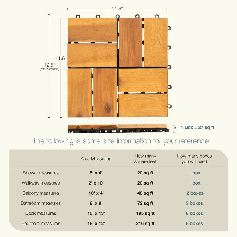27 Pcs Interlocking Deck Tiles for Outdoor Flooring - 11.8"x11.8" Waterproof Patio Pavers for Pool, Balcony, Backyard, Porch -