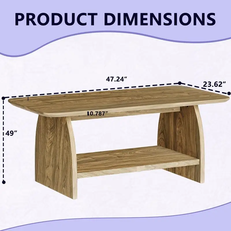 47" Modern Rectangular Coffee Table with Double-layer Design and Storage, Rounded Corner MDF Material, Perfect for Living Room