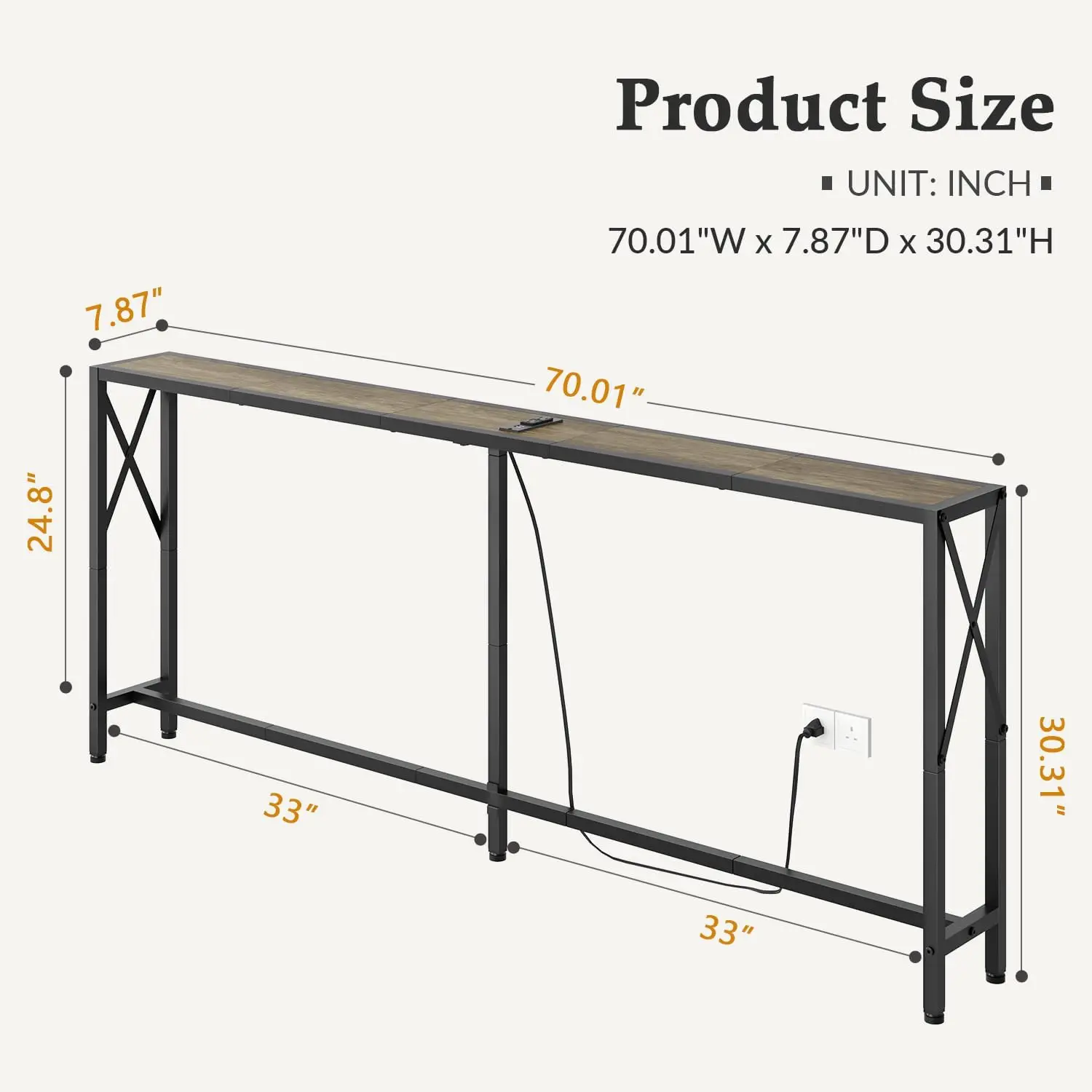 Sofa Table Compact Size: With a depth of 7.9 inches and a width of 70 inches, this console table can fit easily in any tight space, saving you valuable space. Even in small apartments, it can accommodate more items, making your home more neat and comfortable.