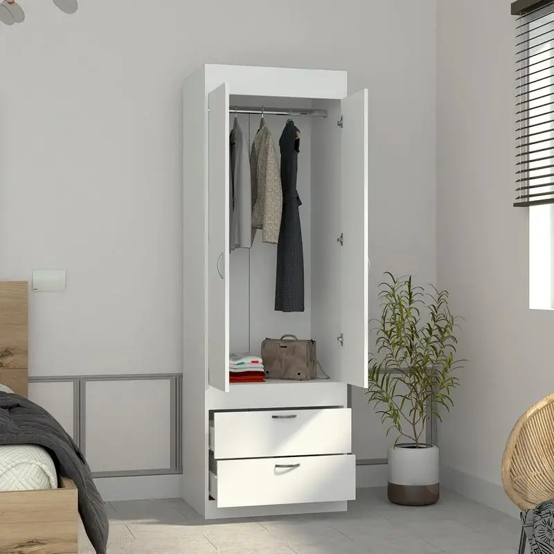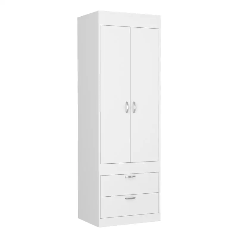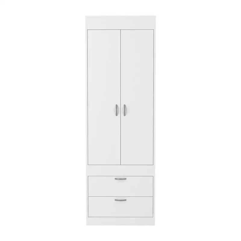 Product Name: Armoire 70H", Double Door Cabinet, Two Drawers, Metal Handles, Rod, White