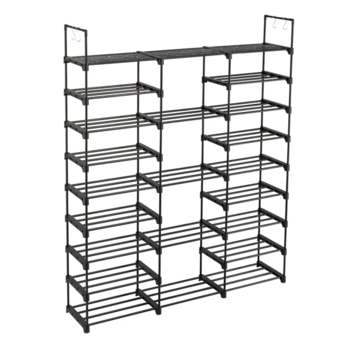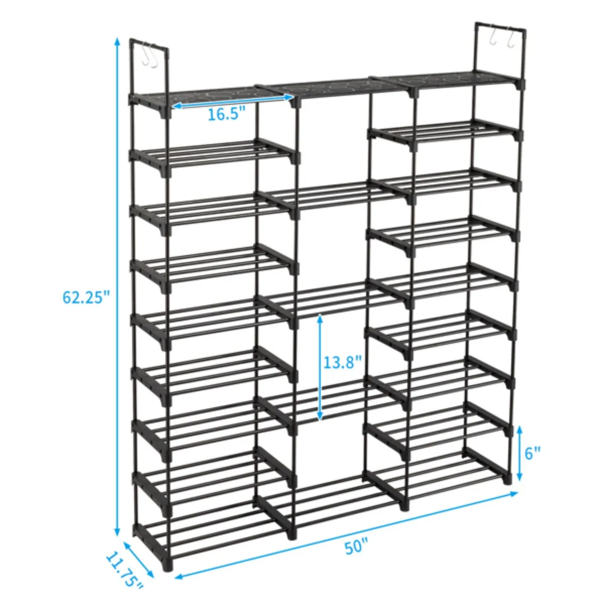 【Durable & Sturdy Structure】The shoe organizer is composed of thick and sturdy metal pipes and connectors. The sturdy and stable shoe shelf can withstand great weight without deformation or damage. The metal pipe adopts a black anti-rust coating process, which greatly enhances the service life, and can also be integrated with the decoration style of the room, Making the room comfortable and spacious.