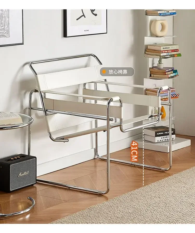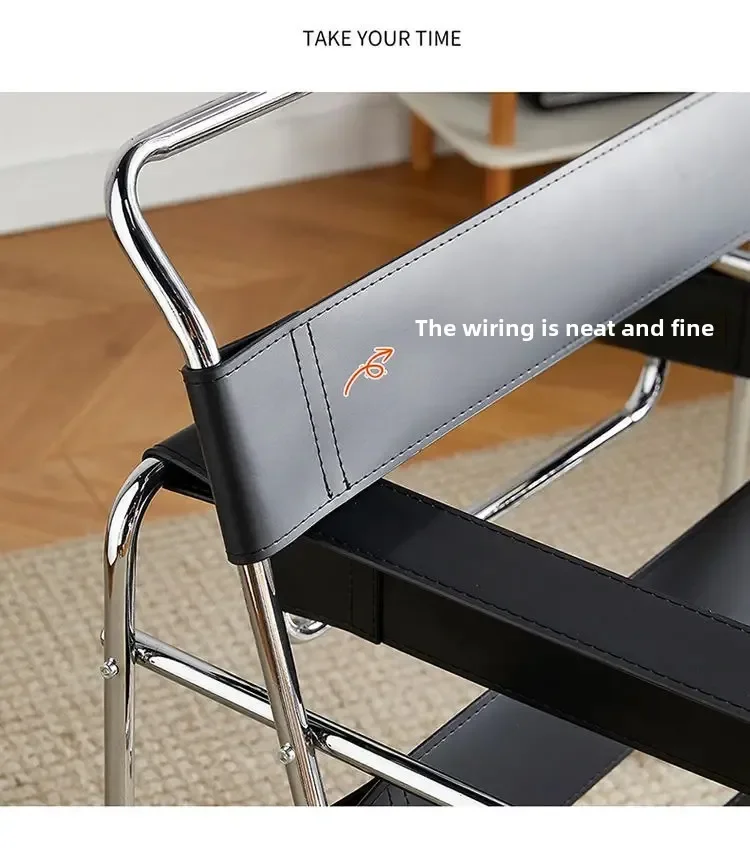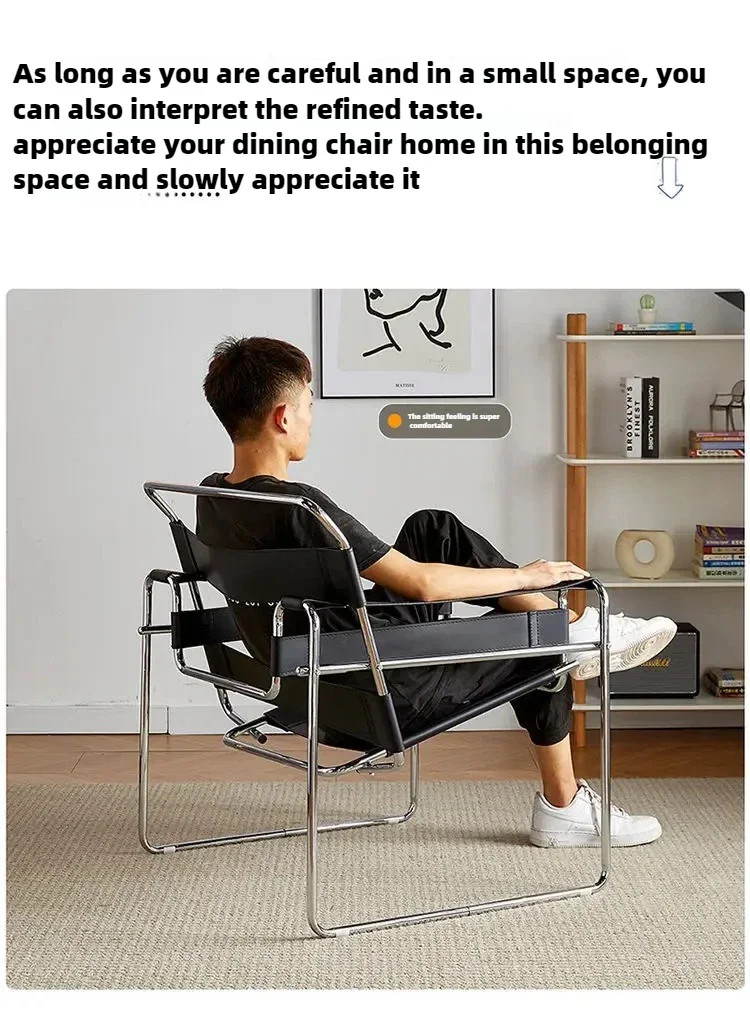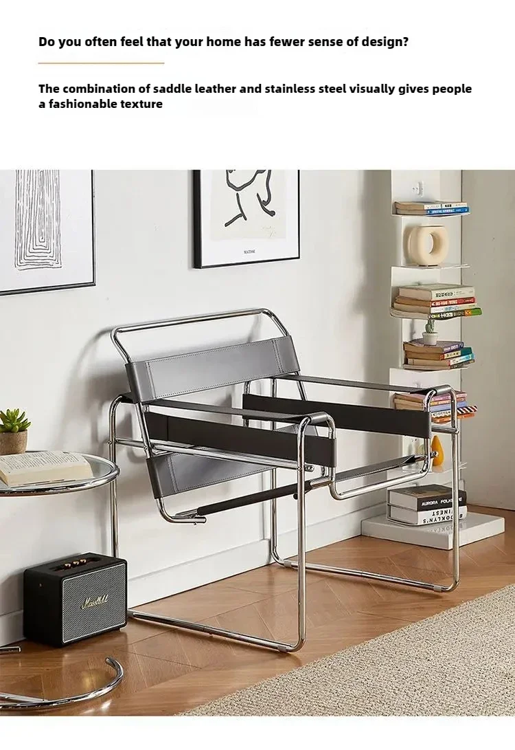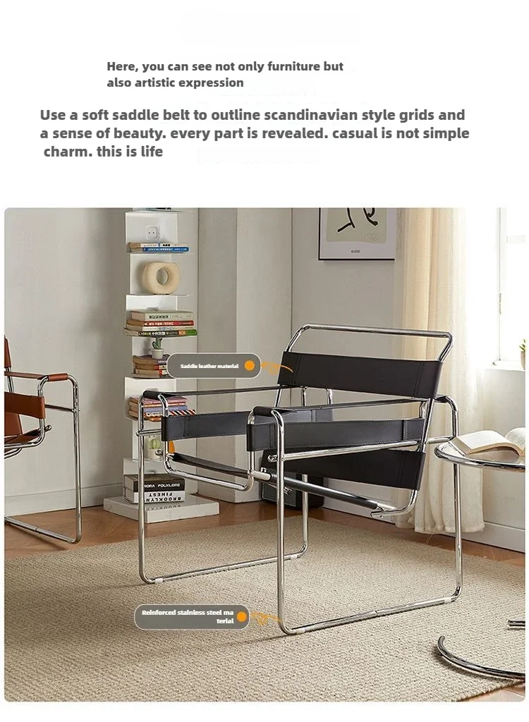 Bauhaus Inspired Vassili Chair Medieval Industrial Style Single Seat Premium Saddle Leather Network Red Accent Photo Furniture