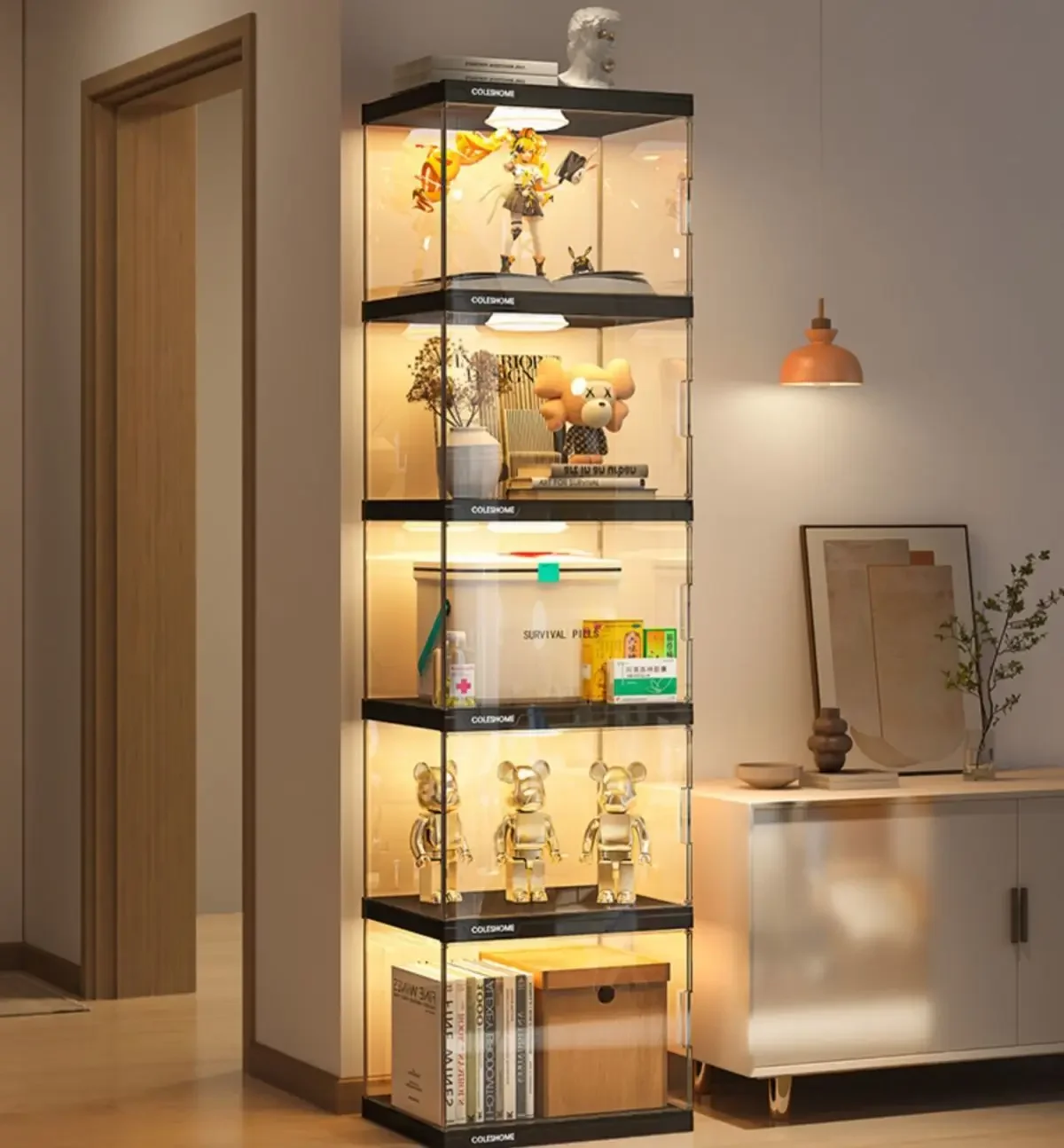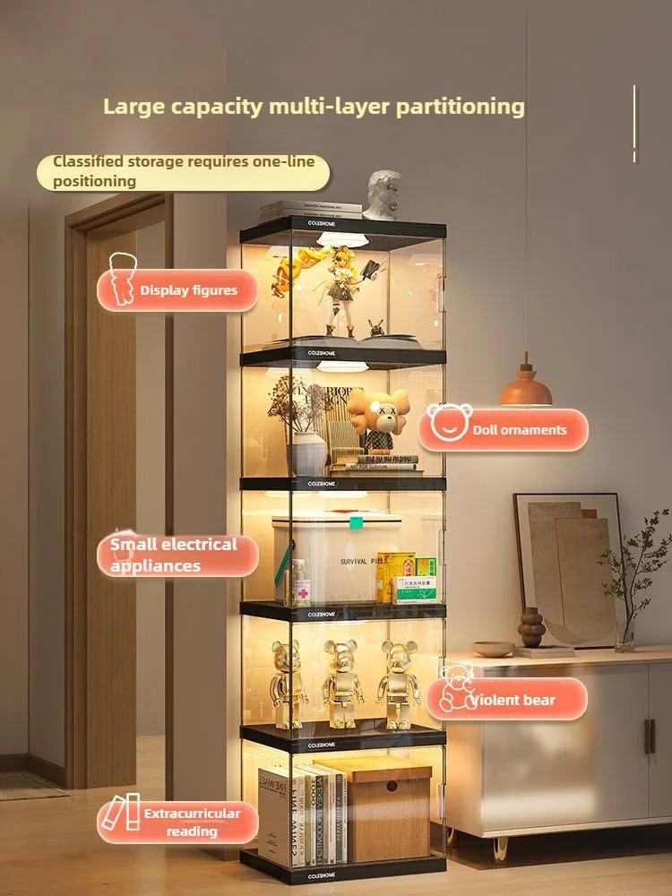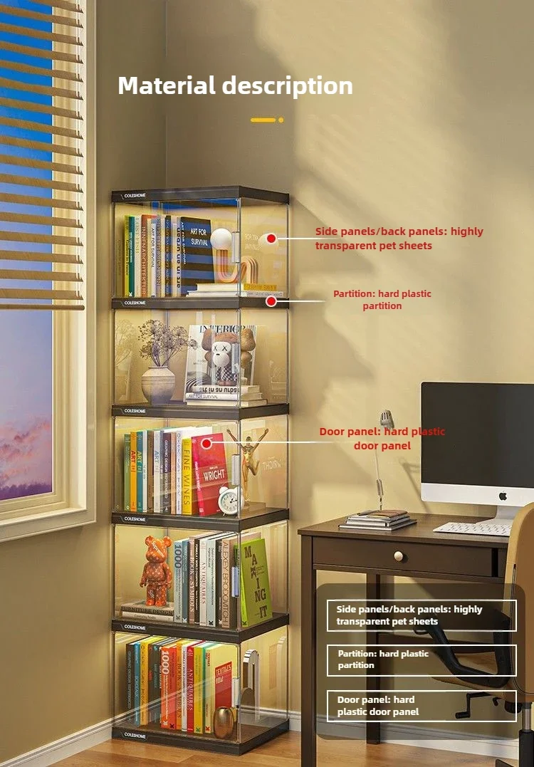 Bookcase Display Cabinet with Door Dustproof Bookshelf Storage Transparent Figure Storage Cabinet Model Display Standing Cabinet