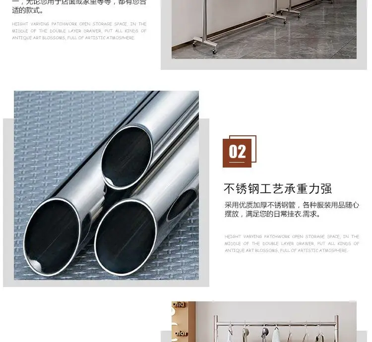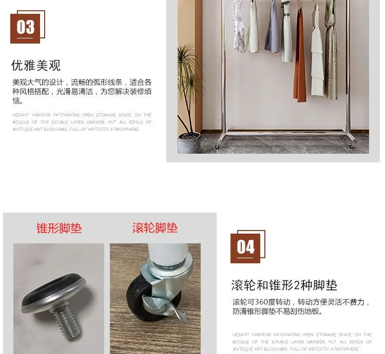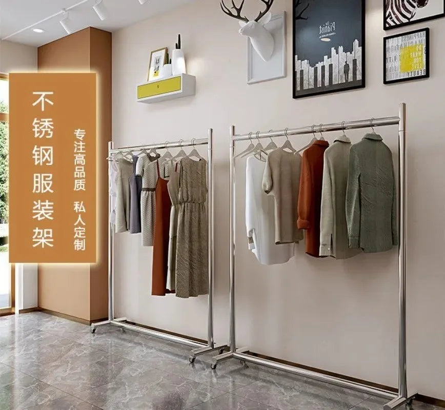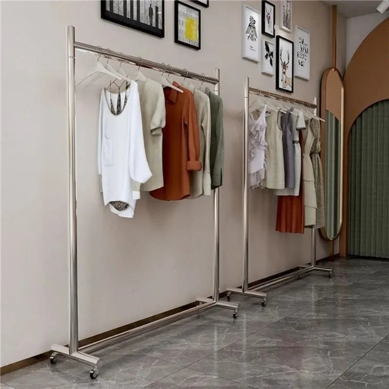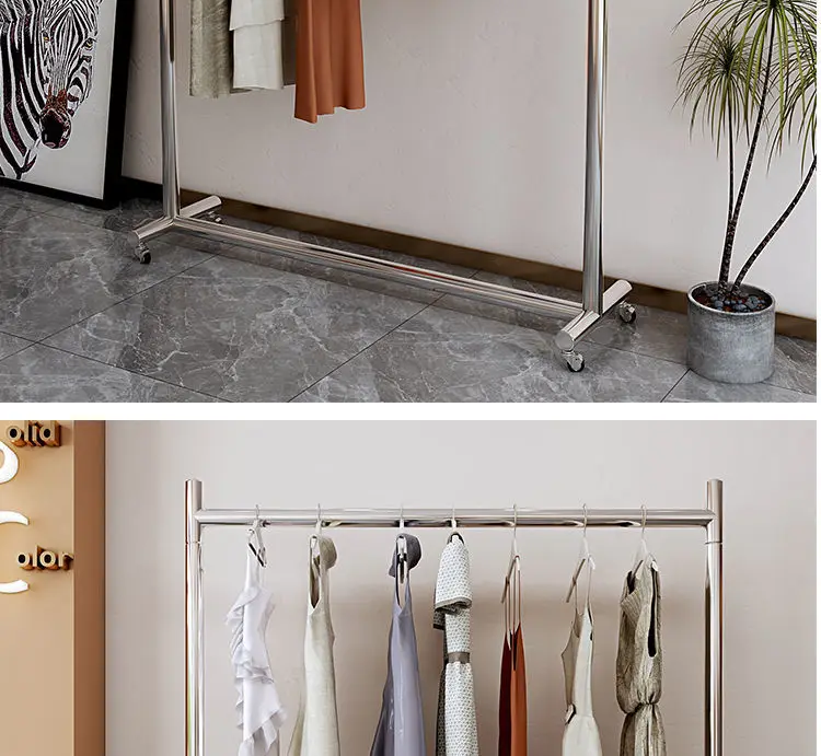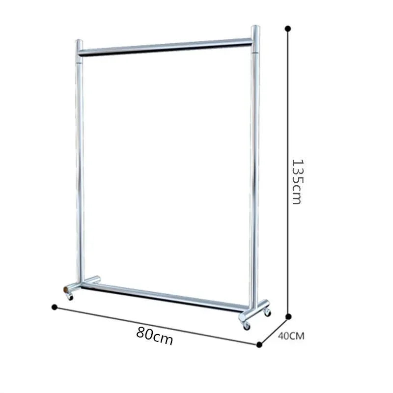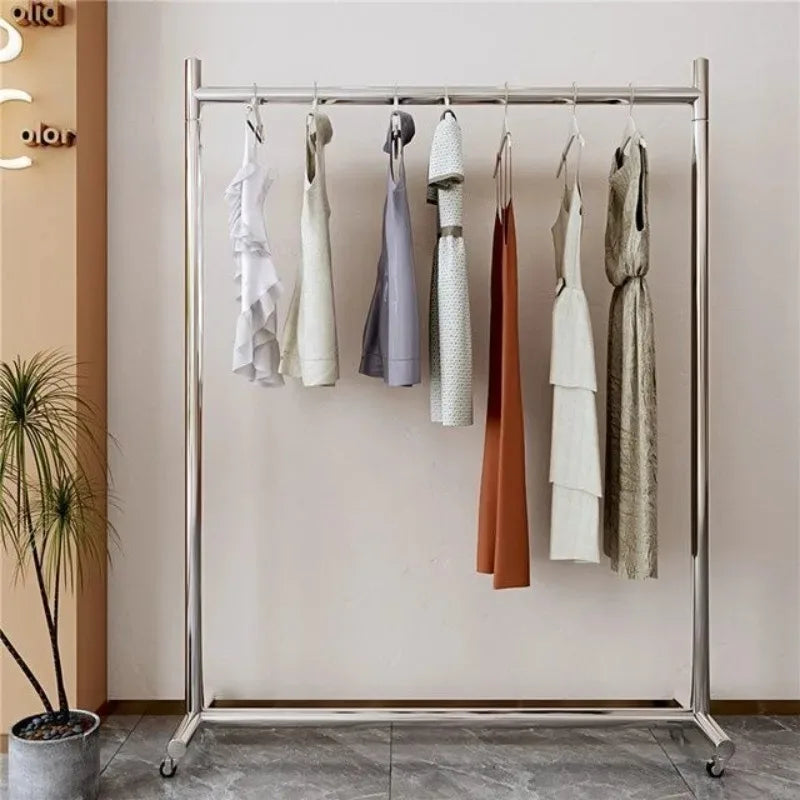 Tired of messy clothes piling up? This stainless steel clothing rack solves your storage troubles. Its rolling design allows easy movement, so you can reposition it whenever needed. The stainless steel material is sturdy, ensuring it can hold multiple garments without wobbling. Whether you need to organize your bedroom wardrobe, display clothes in a shop, or keep your living room tidy, this rack is up to the task.