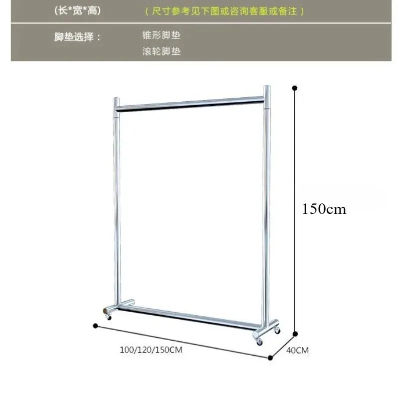 This clothing rack is made of high - quality stainless steel, ensuring durability and rust resistance. It comes in various sizes. For example, one size has a height of 135cm (about 53.15 inches), a length of 60cm (around 23.62 inches), and a width of 40cm (approximately 15.75 inches). Another size option has a height of 150cm (about 59.06 inches), with lengths available in 100cm (39.37 inches), 120cm (47.24 inches), or 150cm (59.06 inches), and a width of 40cm (15.75 inches). It has a strong load - bearing capacity, suitable for hanging various clothes.