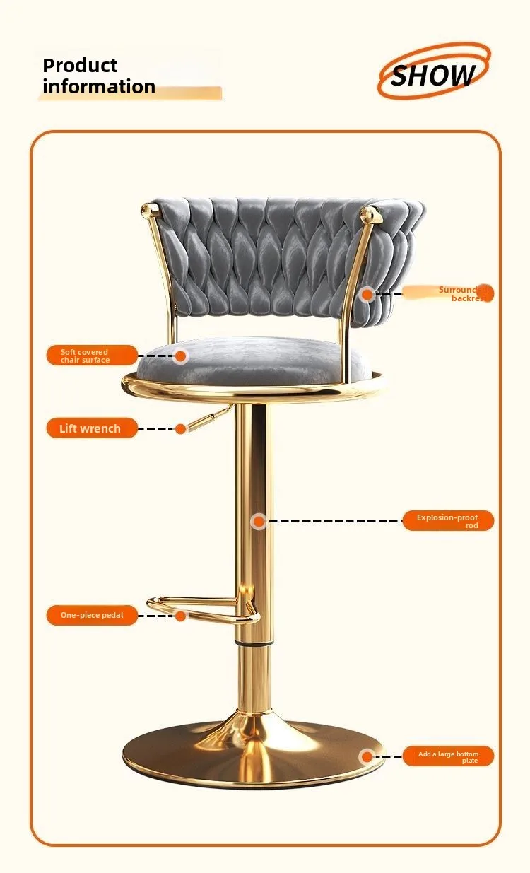 Comfortable Trendy Modern Luxury Design Chairs Premium Height Adjustable Swivel Bar Stool Footrest Home Kitchen Pub KTV chaise