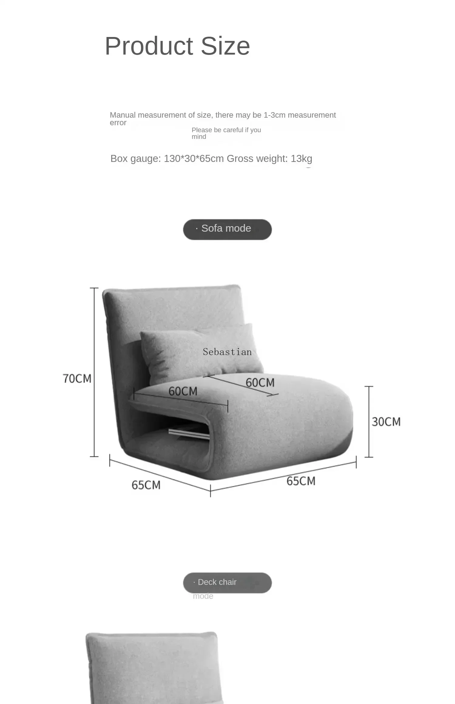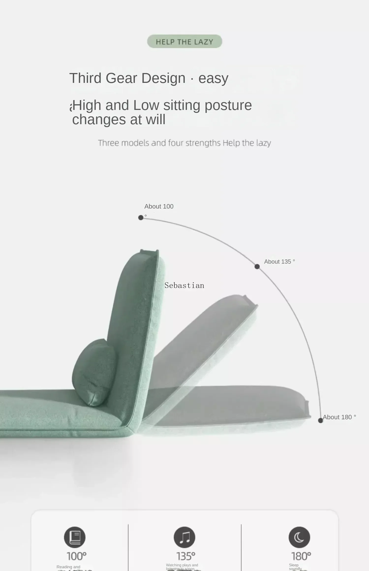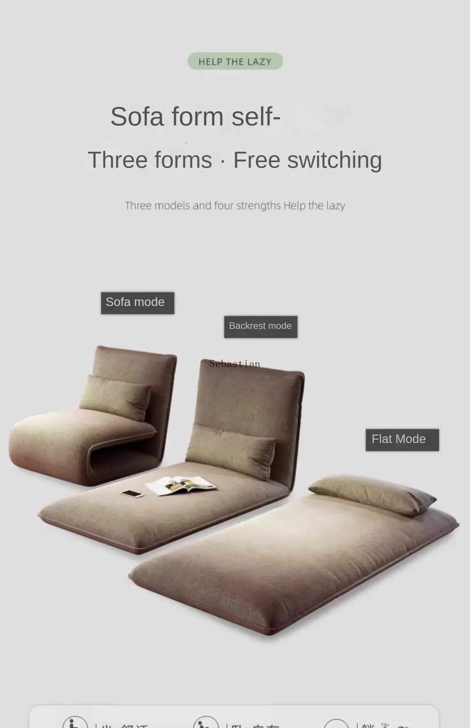 Folding Lazy Sofa Bed Multi Use Tatami Lounge Chair for Bedroom Balcony Bay Window with Adjustable Backrest