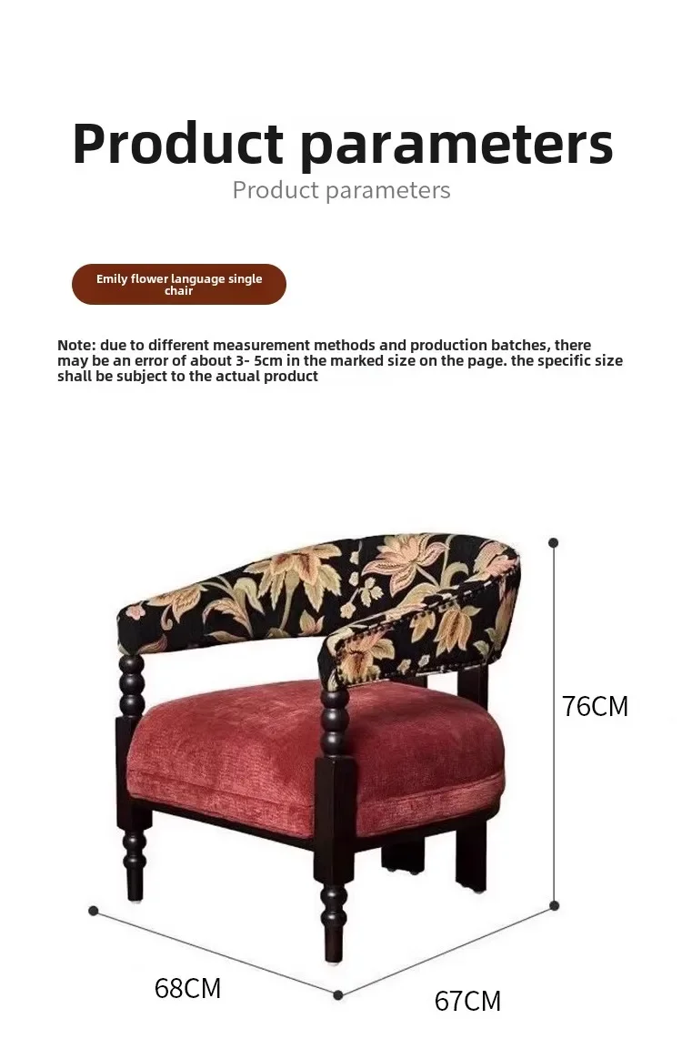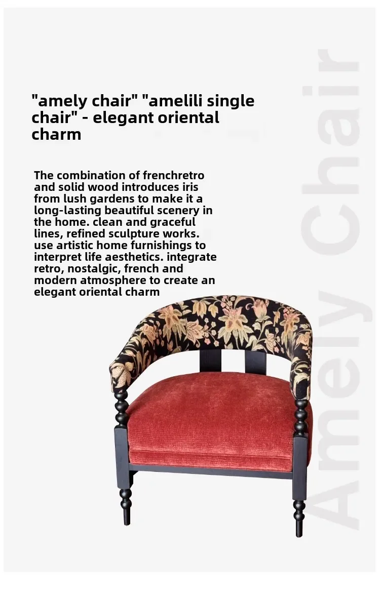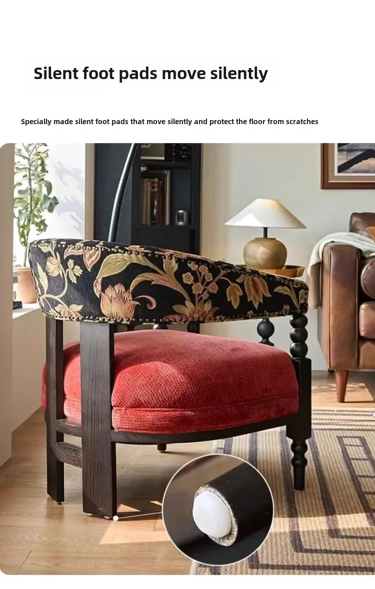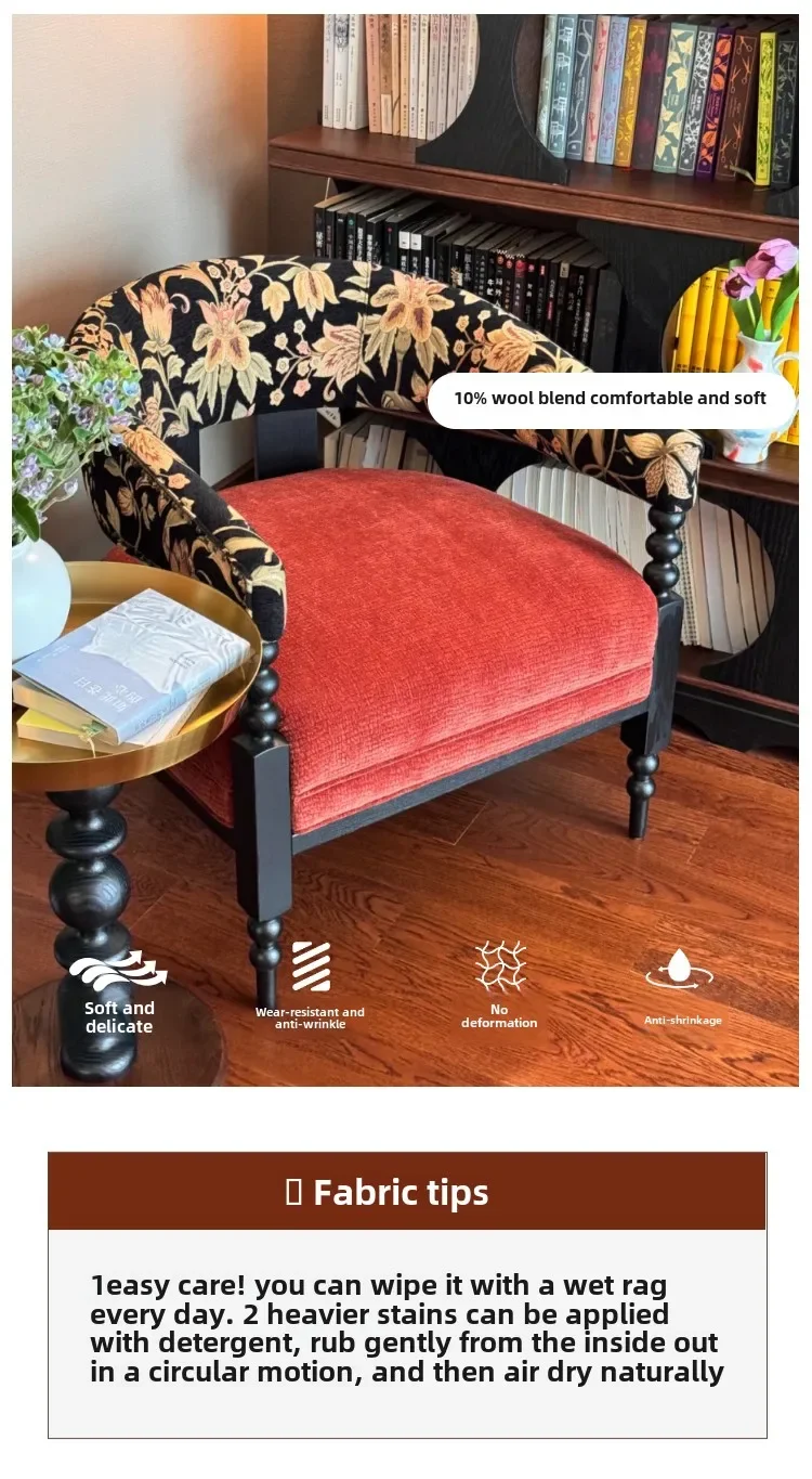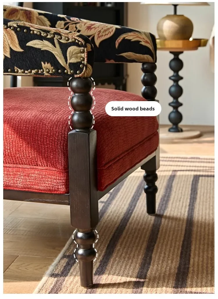 French Retro Single Sofa Living Room Study Solid Wood Leisure Fabric Medieval Lazy Chair Designer Chair Living Room Lounge Chair