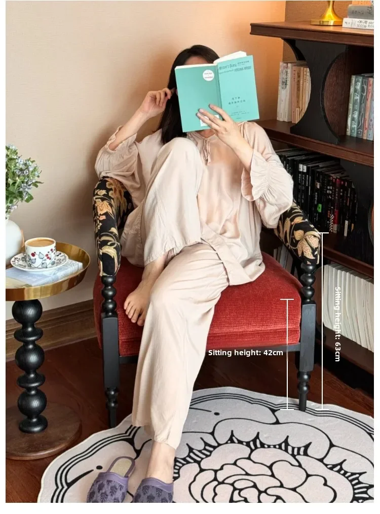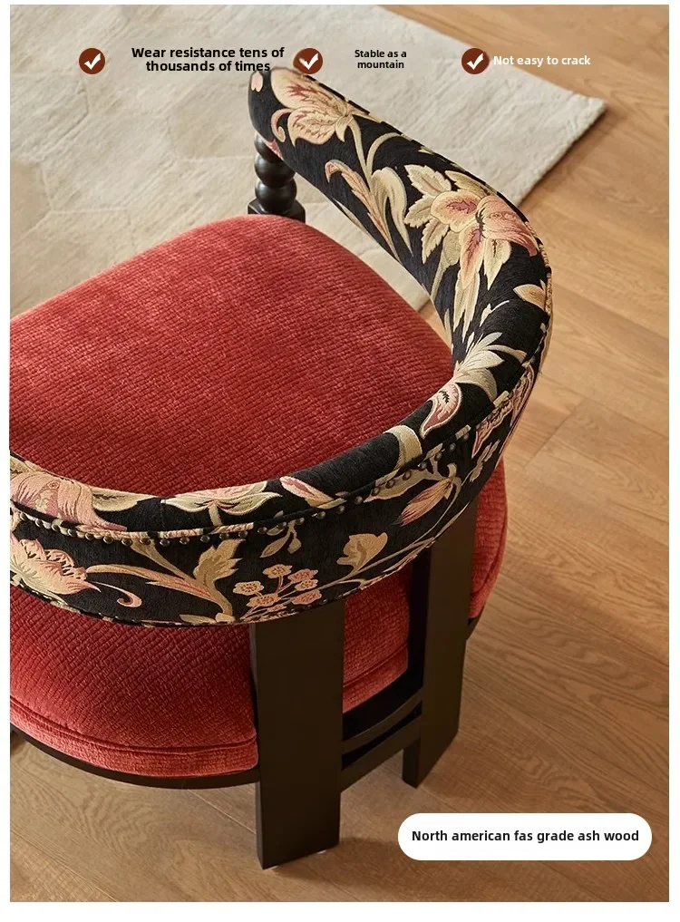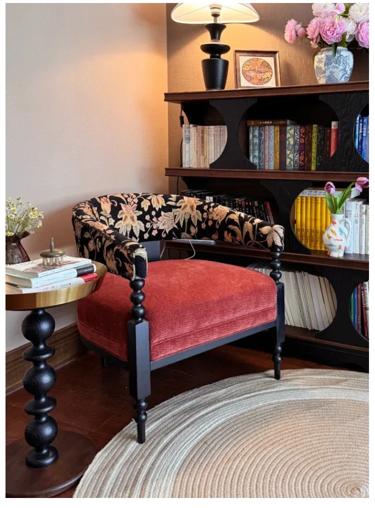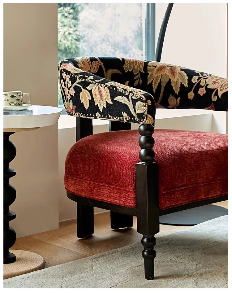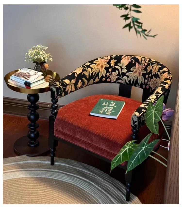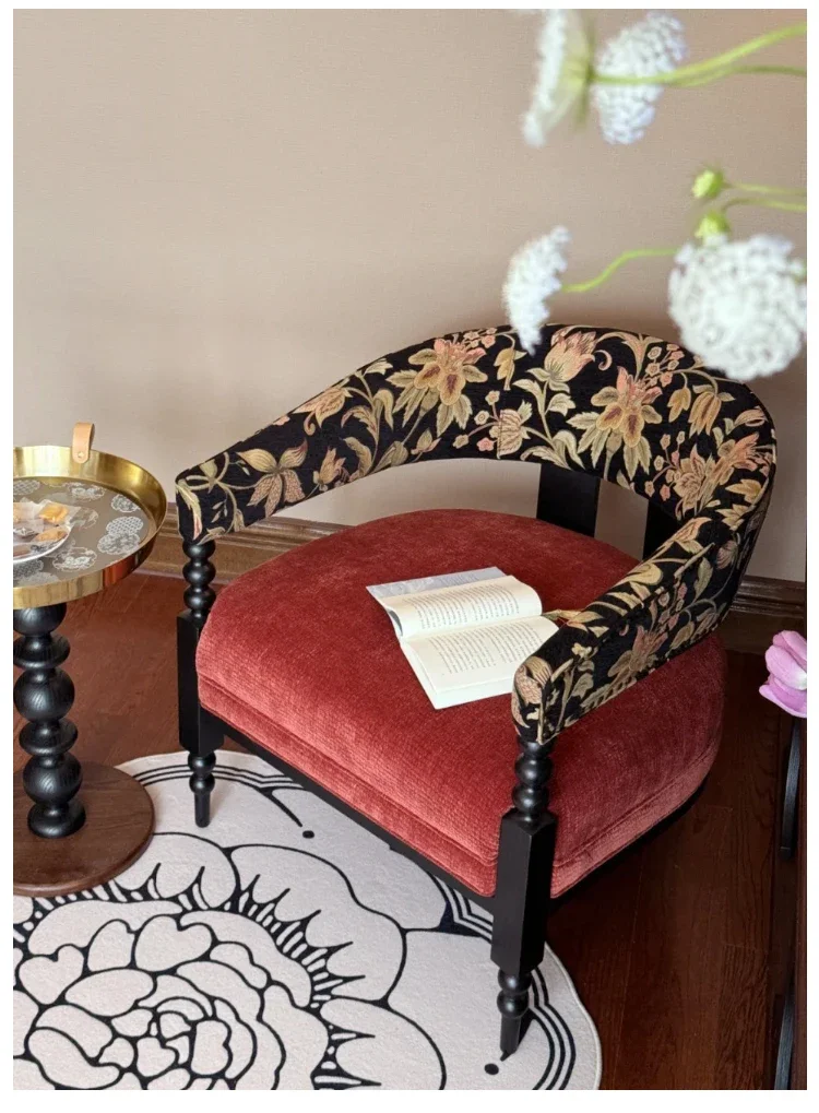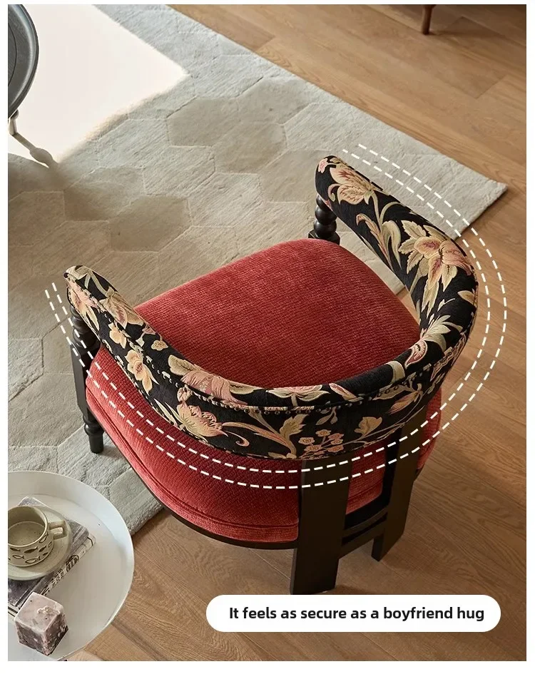 French Retro Single Sofa Living Room Study Solid Wood Leisure Fabric Medieval Lazy Chair Designer Chair Living Room Lounge Chair