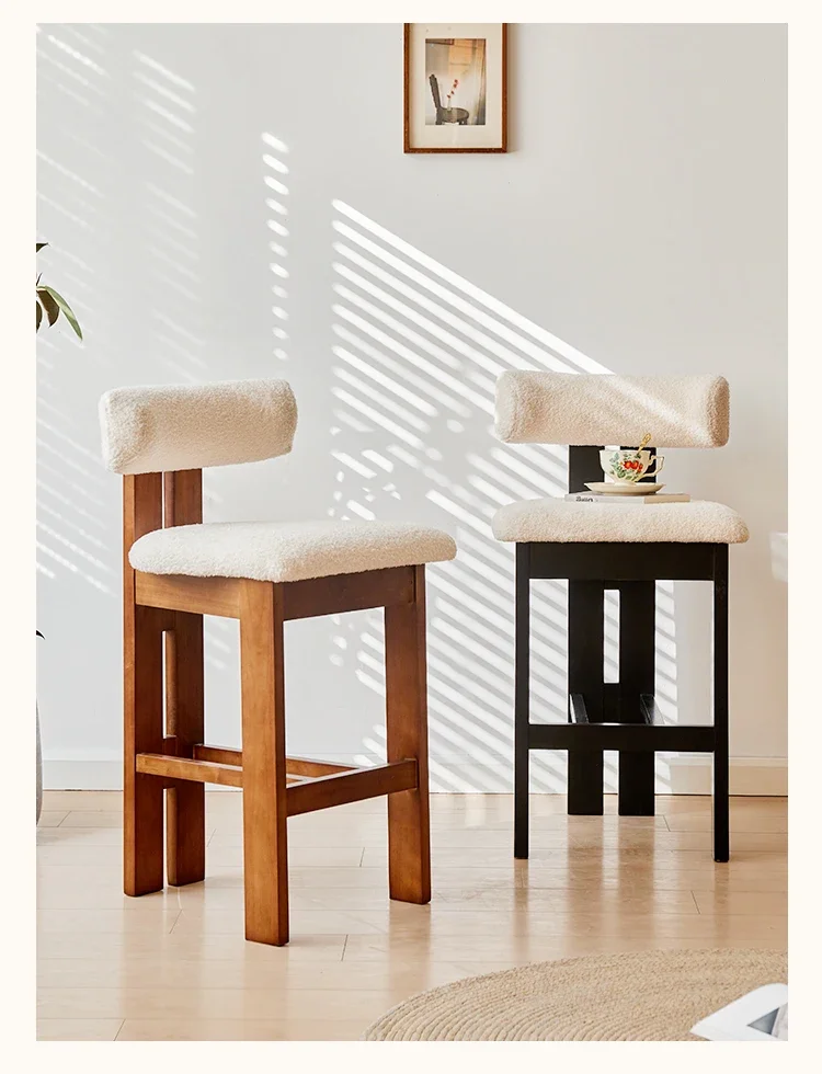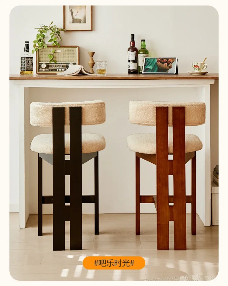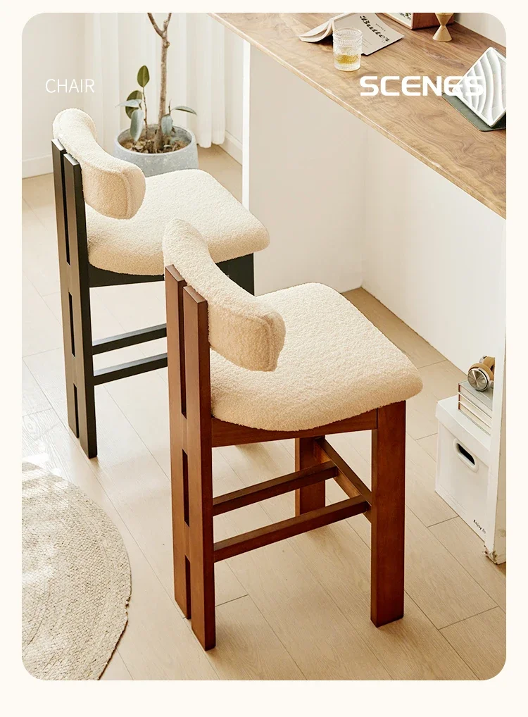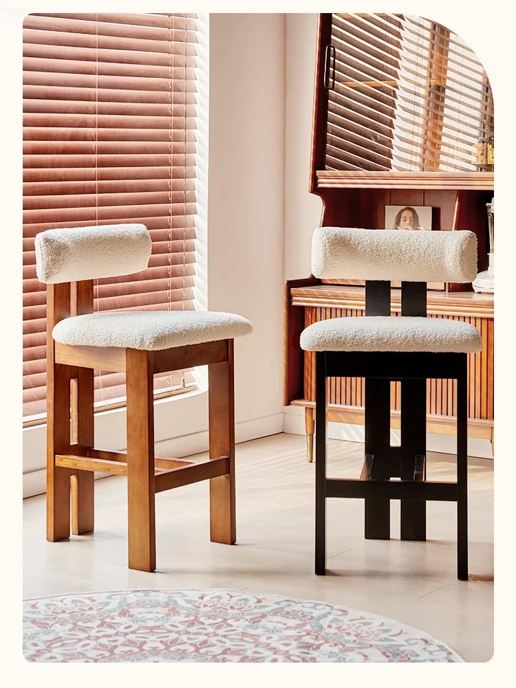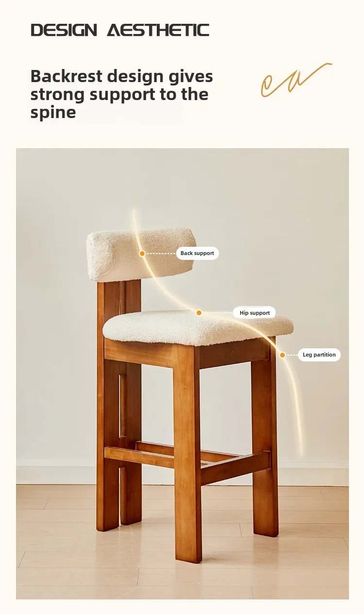 French Vintage Bar Stool High Back Velvet Seat Wabi Sabi Designer Solid Wood Counter Chair for Kitchen Island Decor