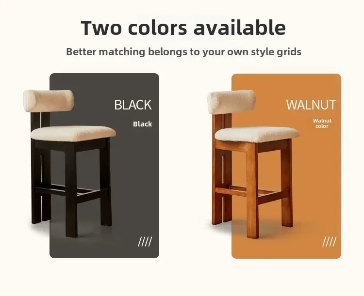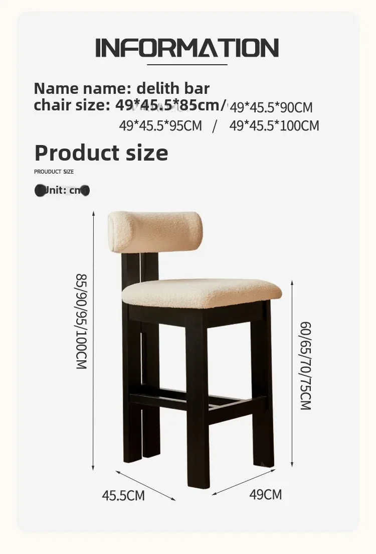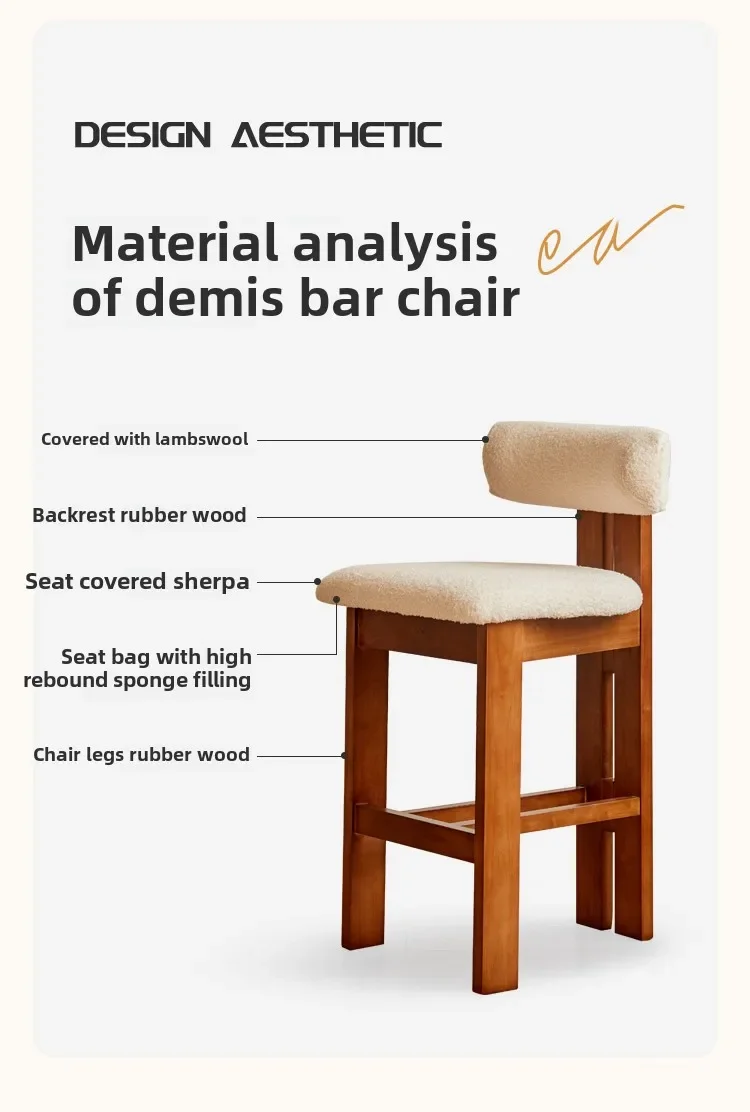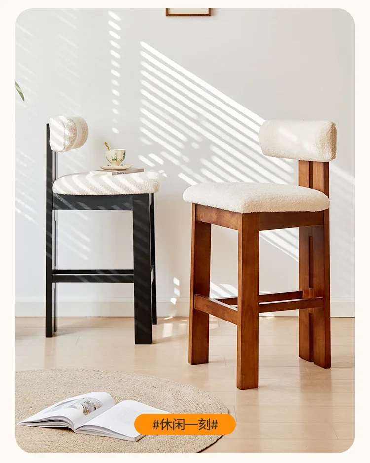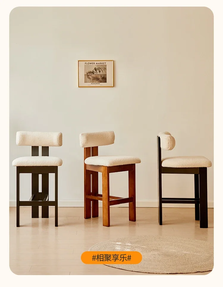 French Vintage Bar Stool High Back Velvet Seat Wabi Sabi Designer Solid Wood Counter Chair for Kitchen Island Decor