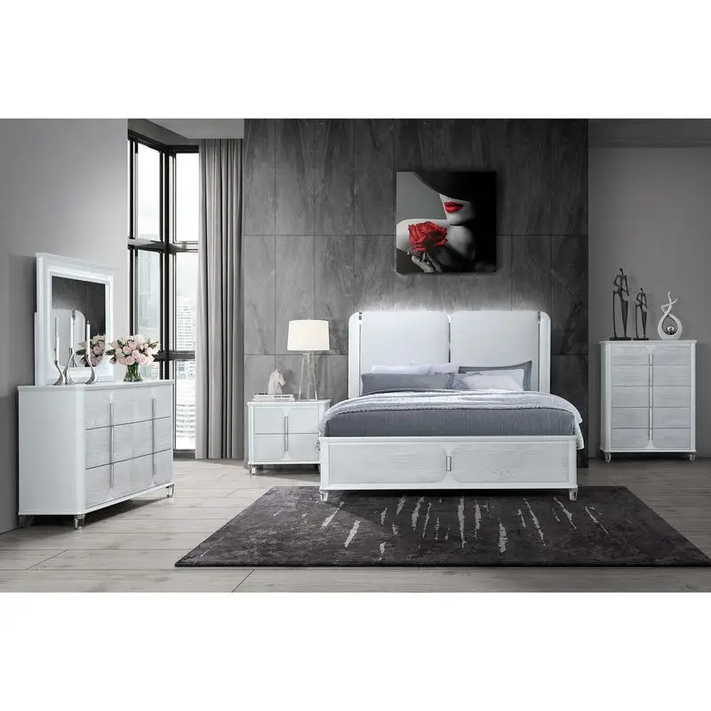 WHITE UPHOLSTERYtEXTURED DRAWER FRONTS