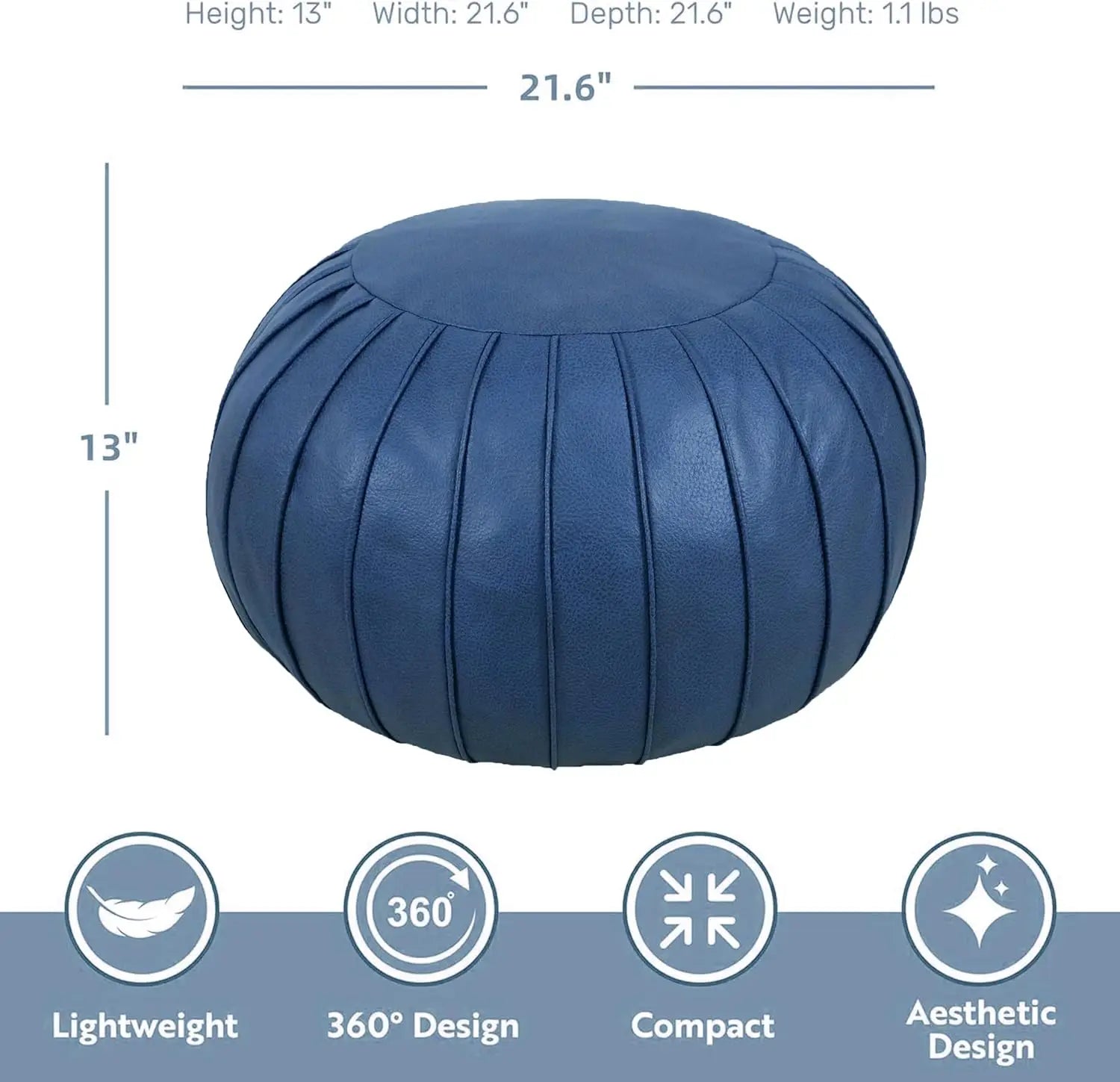 COMFORT and COMPACT: ottoman dimension is approximately 21.6” dia. and 13” high, weighing a mere 1.1 lbs. (unstuffed weight). Lightweight & portable design makes pouf fit in perfectly just about anywhere.