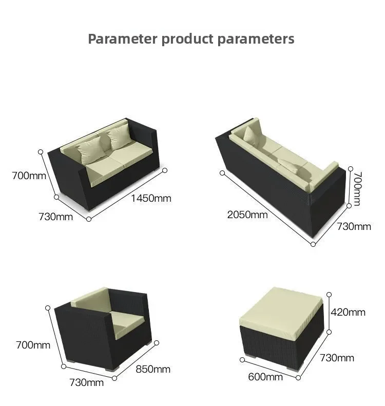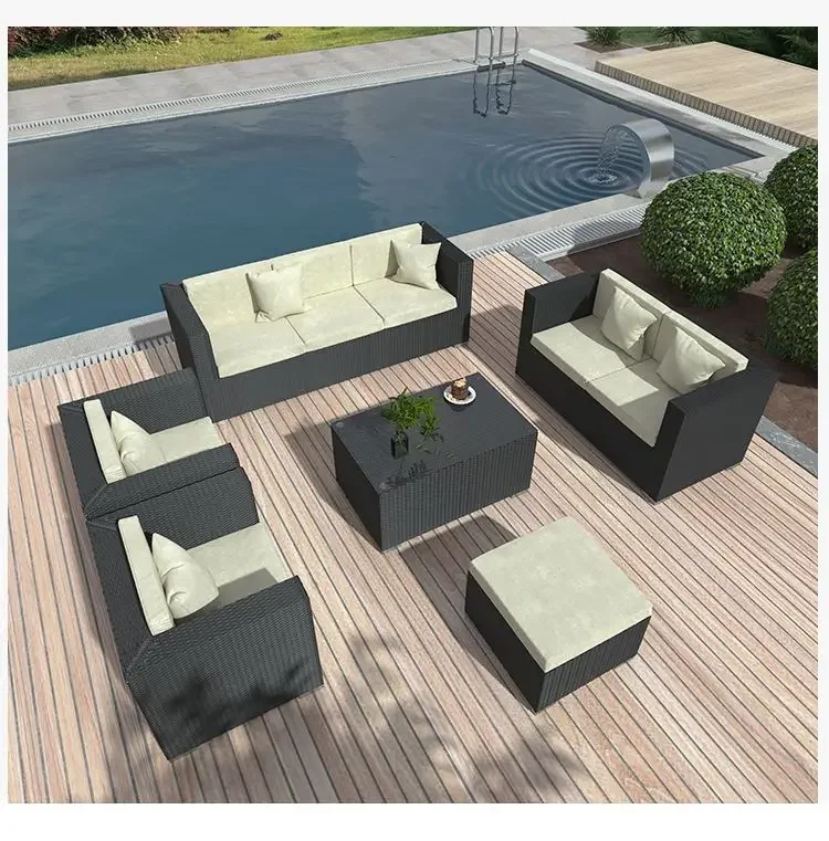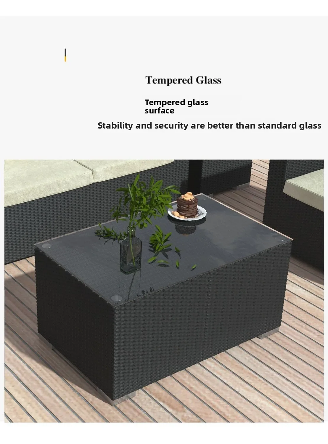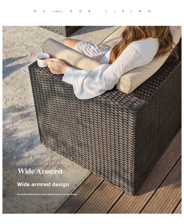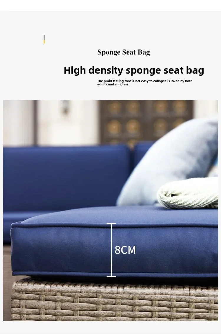 Handwoven Rattan Patio Conversation Set, Cushions and Glass Table Rattan Garden Furniture Set, Outdoor Corner Sofa Couch