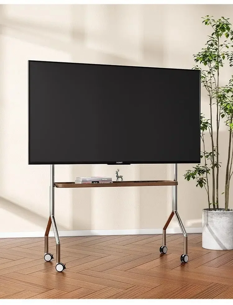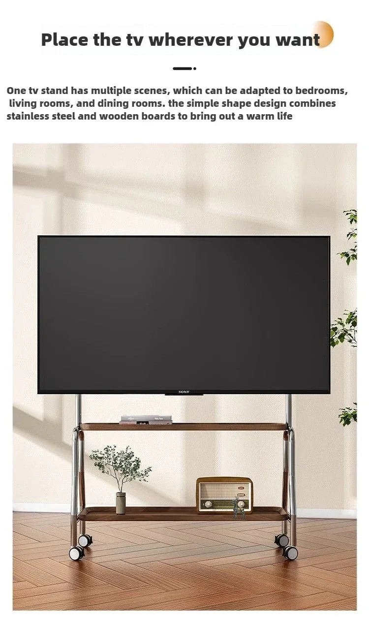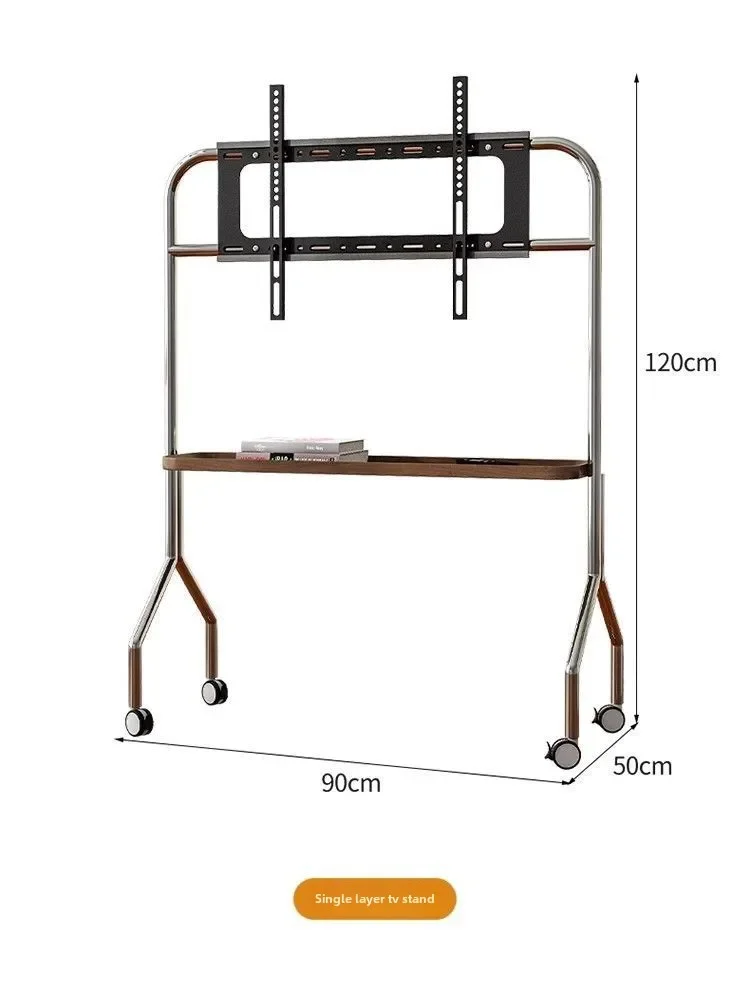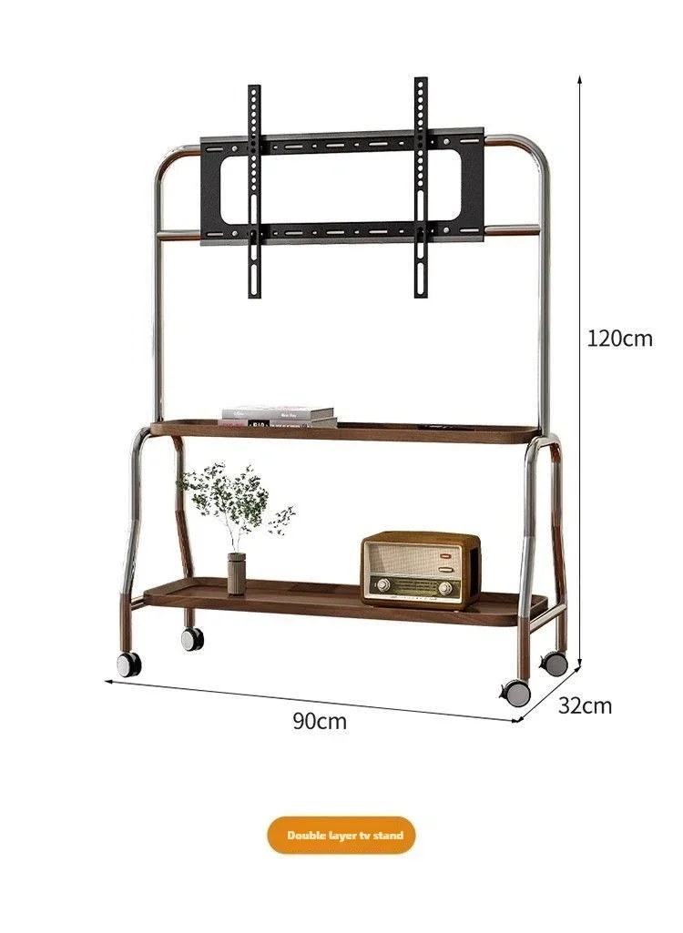 Household TV Bracket Stainless Steel TV Stand Home Small Movable Scandinavian Retro Floor Living Room Monitor TV Shelf Table