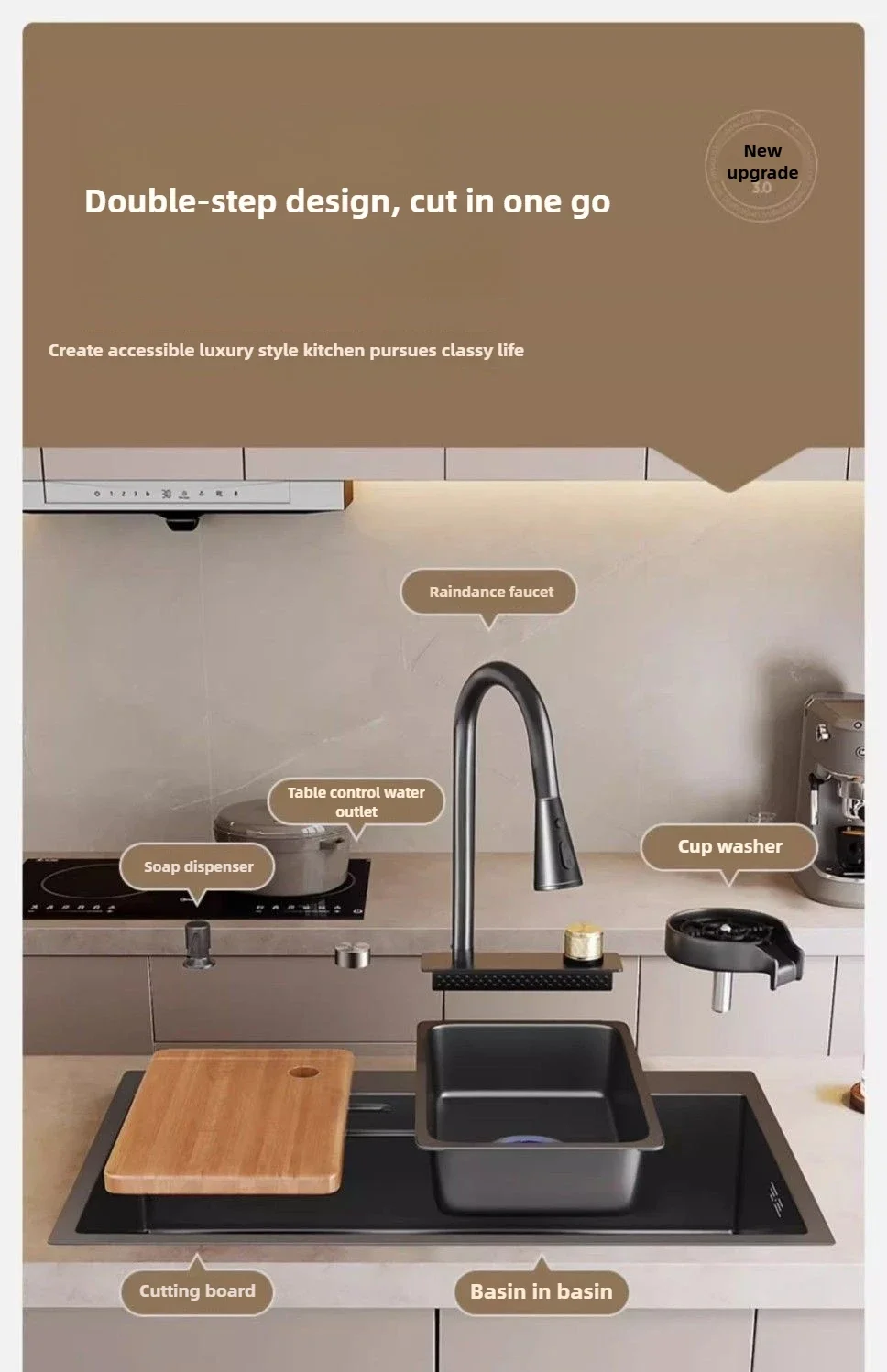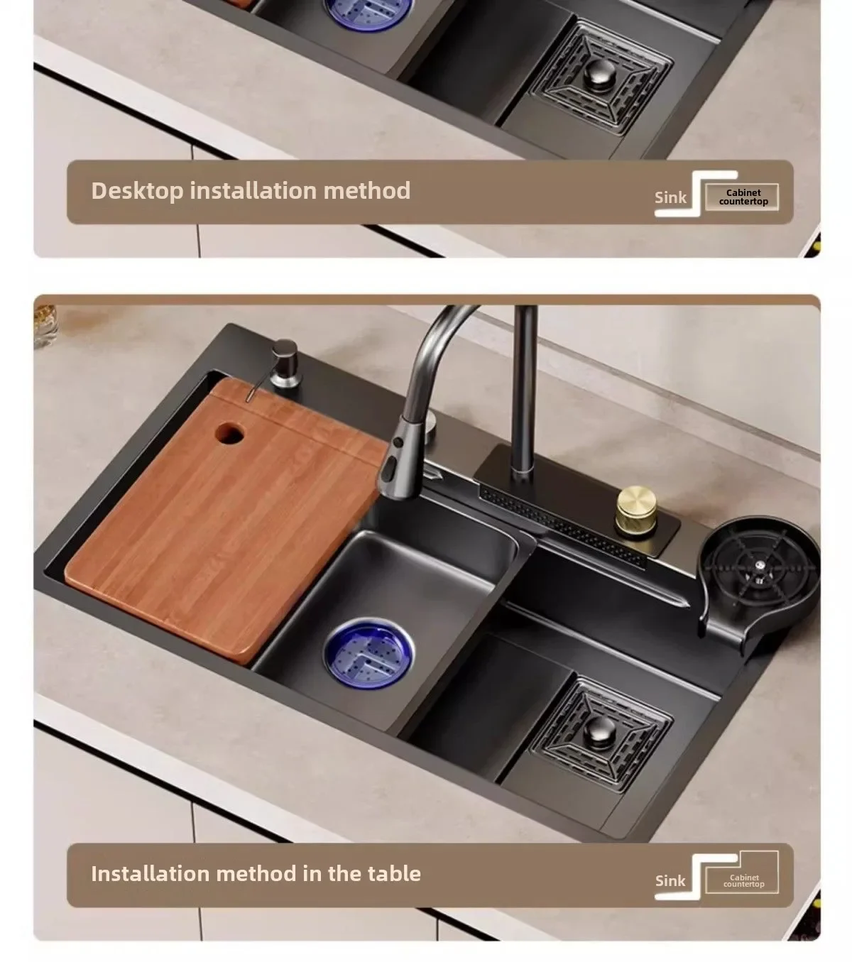 Package included: With soap dispenser, with drain basket, with other accessories
