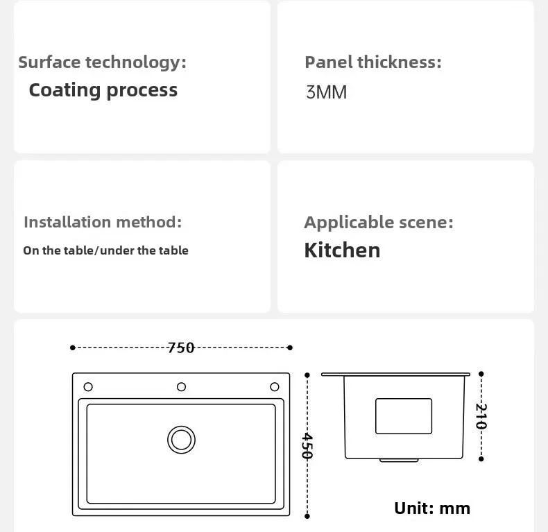 Large Single Slot Stainless Steel Kitchen Sink Household Table Basin Vegetable Basin Stainless Steel Sink Nano Coating Thickened