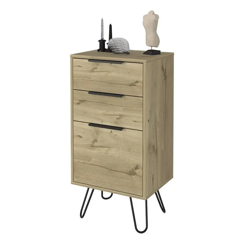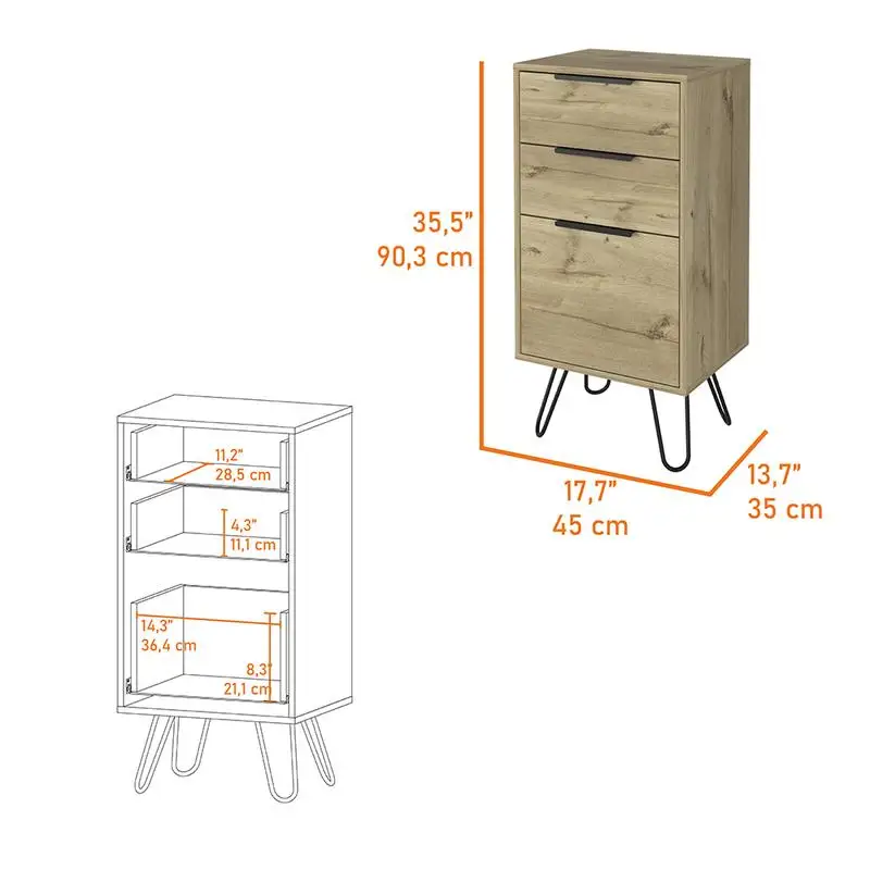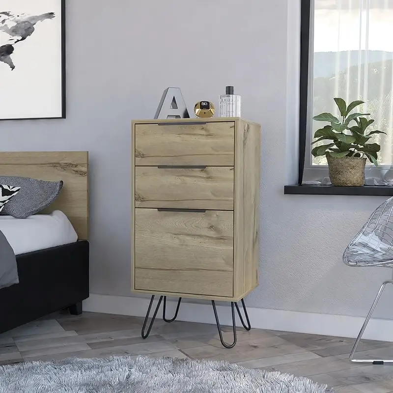 Light Dresser, Skyoner, Hairpin Legs, Premium Top, 3 Drawers, Light Oak Finish, Modern Style Storage Solution for Bedroom,