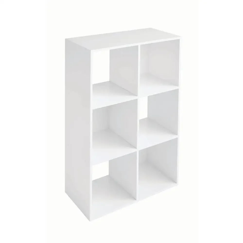 Mainstays 6-Cube Storage Organizer, White Features six 11" x 11" x 11" open storage compartments Can be used vertically or horizontally to fit your space and needs Designed with 3 open-back shelves and 3 closed-back cube shelves Top panel and 2 middle shelves support up to 22 lbs each; bottom panel supports up to 33 lbs Compatible with Mainstays 10. 5" x 10. 5" collapsible storage bins (sold separately) Perfect for use in dens, living rooms, family rooms, playrooms, home offices and more Materials: particle board, paperboard Finishes available: White (MS5336278612010), Black (MS5336278612009), Canyon Walnut (MS18-D1-1009-49) and Rustic Brown (MS18-D1-1009-48) Attaches to the wall with included hardware for safety Easy to assemble with included instructions and assembly video guide (hammer & Phillips head screwdriver required) Package size: 39. 53" x 4. 17" x 15. 28" (32. 81 lbs) Assembled weight: 32. 5 lbs Assembled dimensions: 23. 7" W x 11. 73" D x 35. 39" H