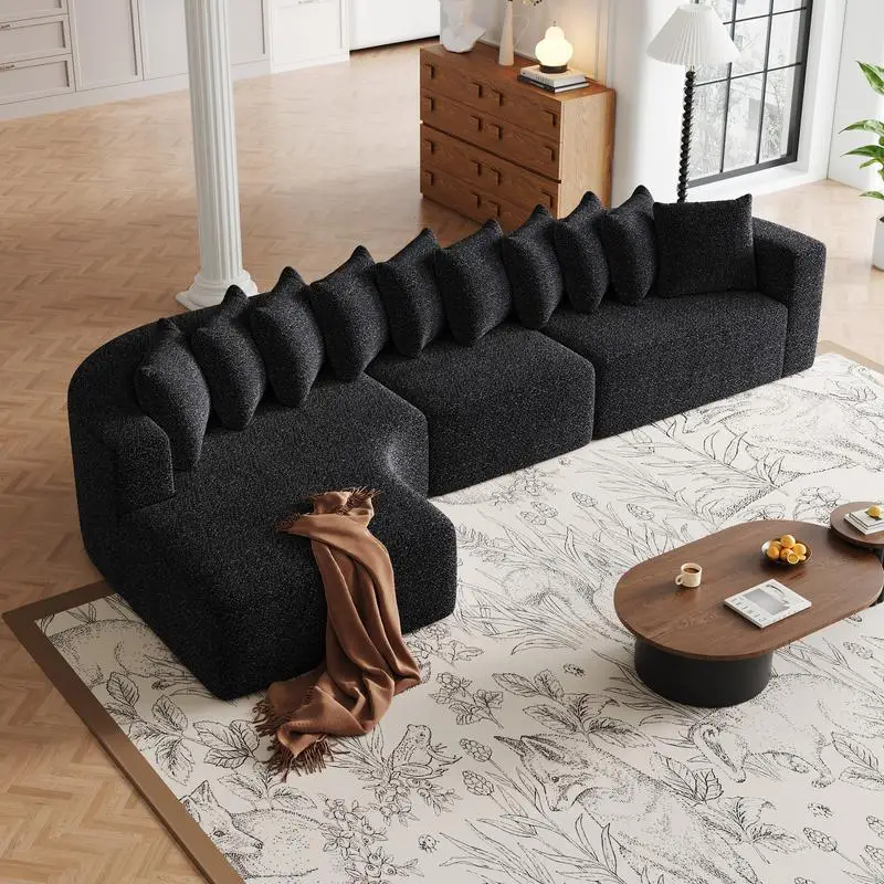 Pair with 10 throw pillows: This modular sofa offers exceptional back support with multiple coordinating pillows. The layered pillow design enhances visual appeal, making it a standout piece in your living room ensemble—perfect for comfortable relaxation and creating an elegant home decor statement.