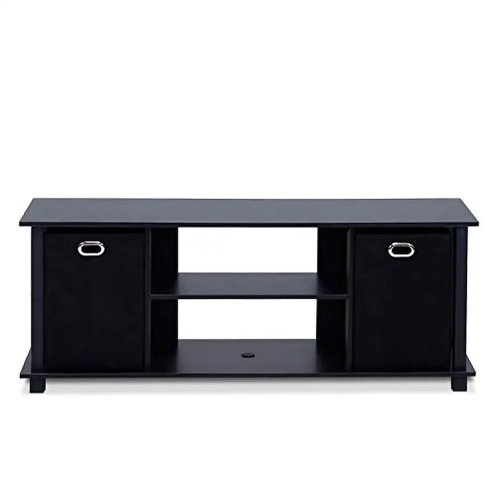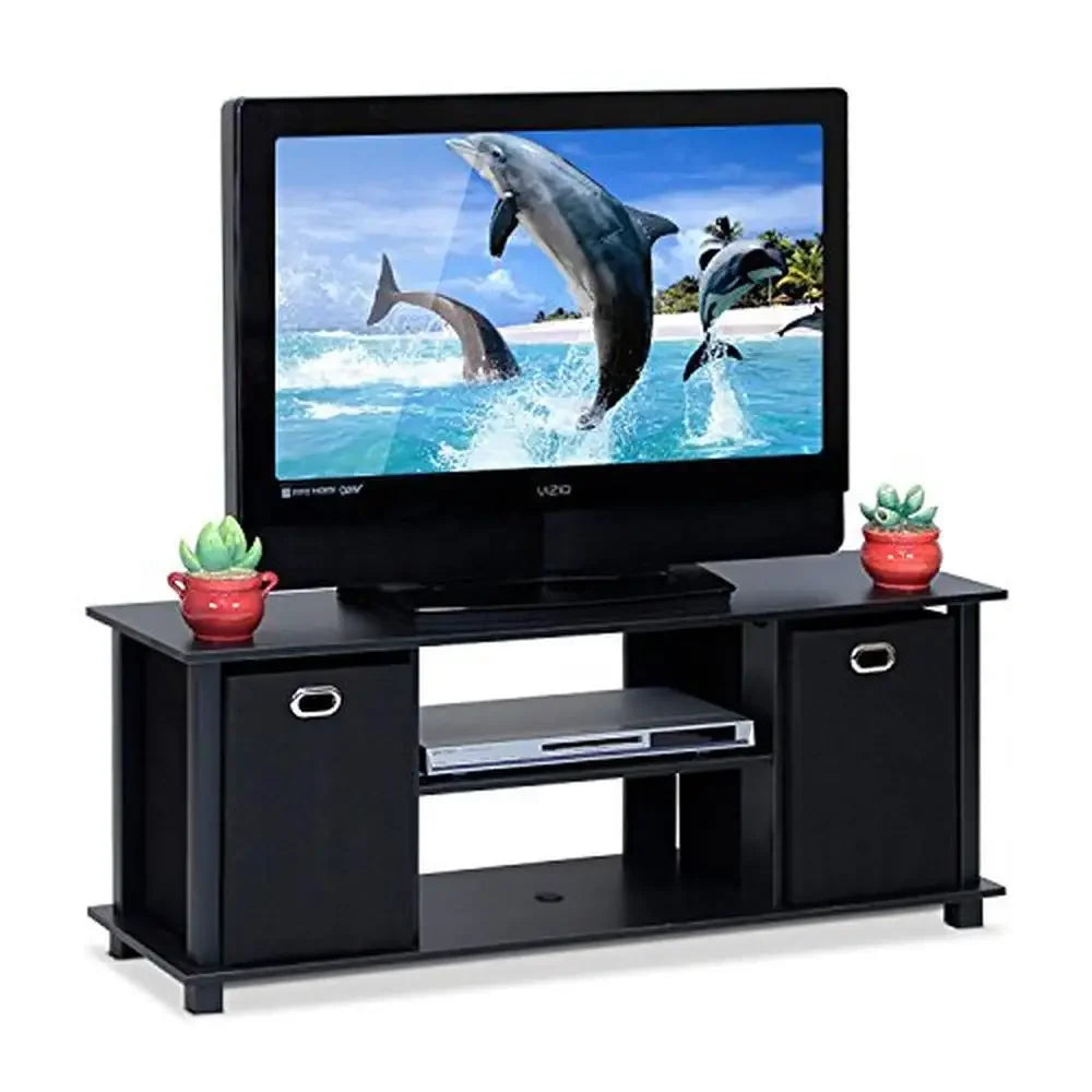 Modern Black Entertainment Center TV Stand Storage Organizer Shelves 42" Flat Panel TV Fit Compact Design Sturdy Easy Assembly