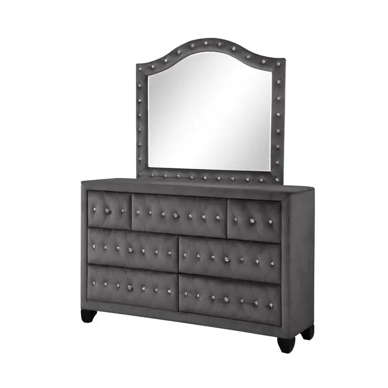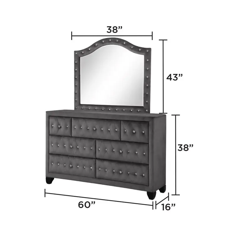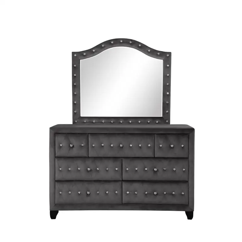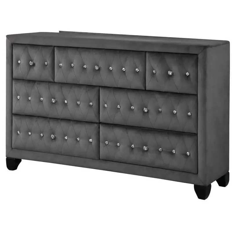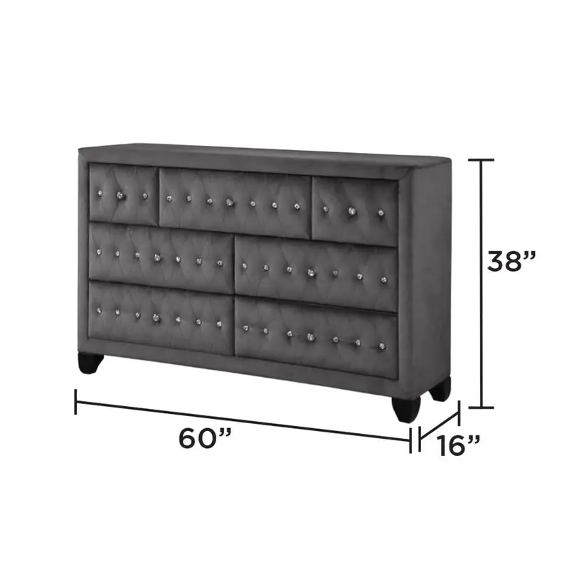 Product Name: Sophia Modern Style Crystal Tufted Upholstery 7-Drawer Dresser finished with Velvet Fabric made with Wood in Gray same as 733569301591 (CA inventory)
