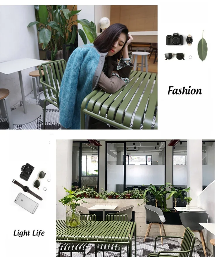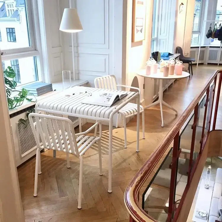 Modern Outdoor Furniture Set Wrought Iron Cafe Chairs Table Milk Tea Shop Beach Leisure Courtyard Dining Ensemble