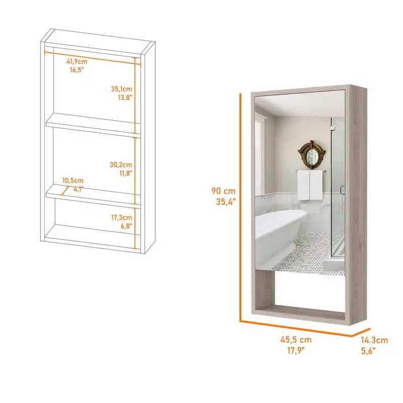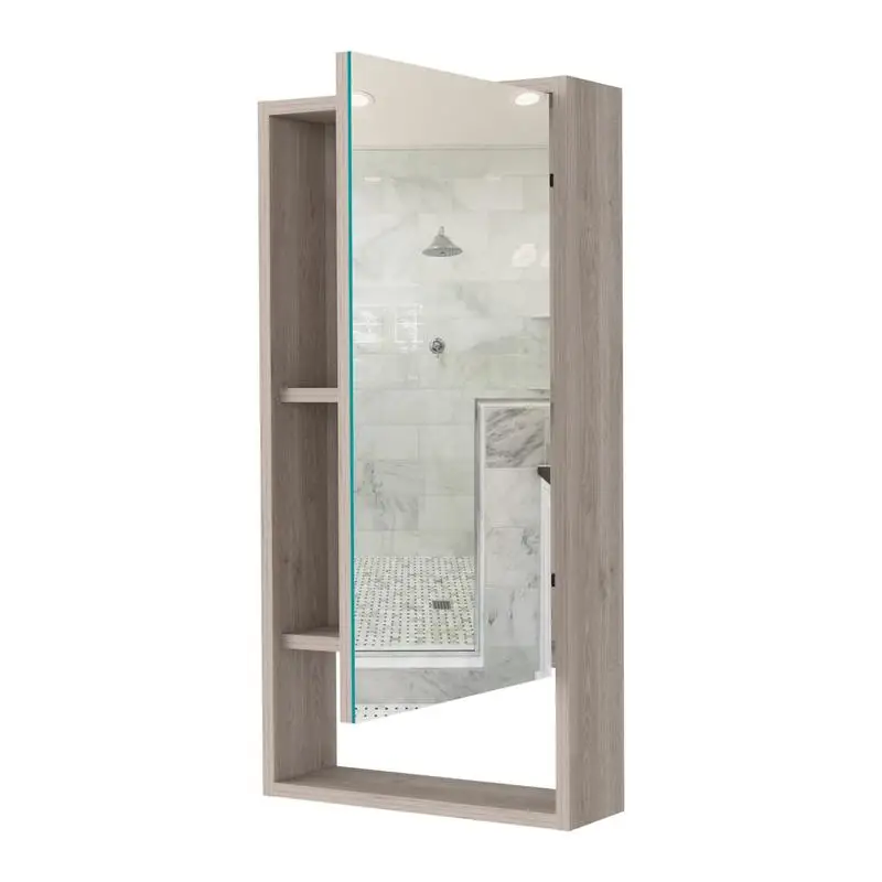 Modesto Medicine Cabinet with Open Shelf and Mirror, Features 2 Interior Shelves for Organized Storage