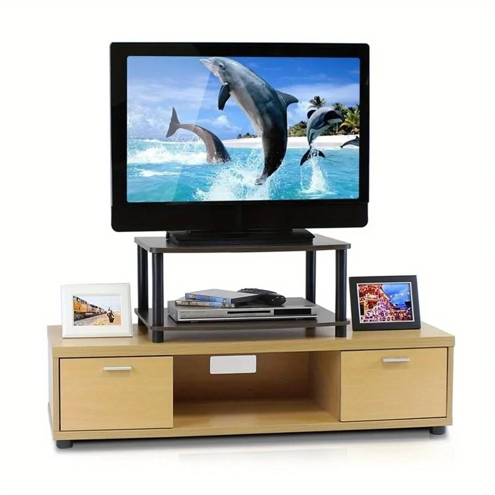 No Tools 2-Tier Elevated TV Stand-Tool-Free Assembly for Quick Setup, 2 Tiers for Media Devices,Elevated Design Improves Viewing