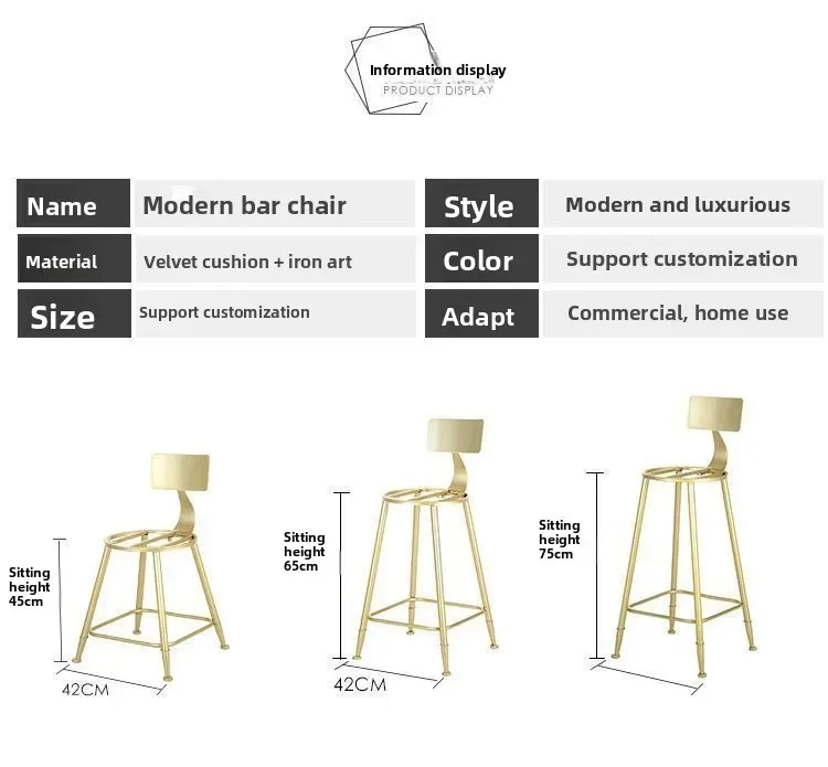 Nordic Minimalist Modern Wooden Frame Casual Adjustable Ergonomic Bar Stool High-Leg Backrest Tall Chair Home Dining Viral Stool