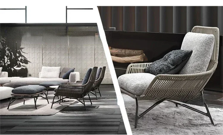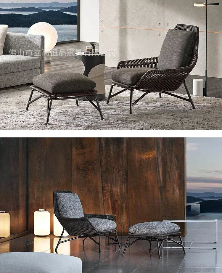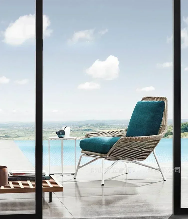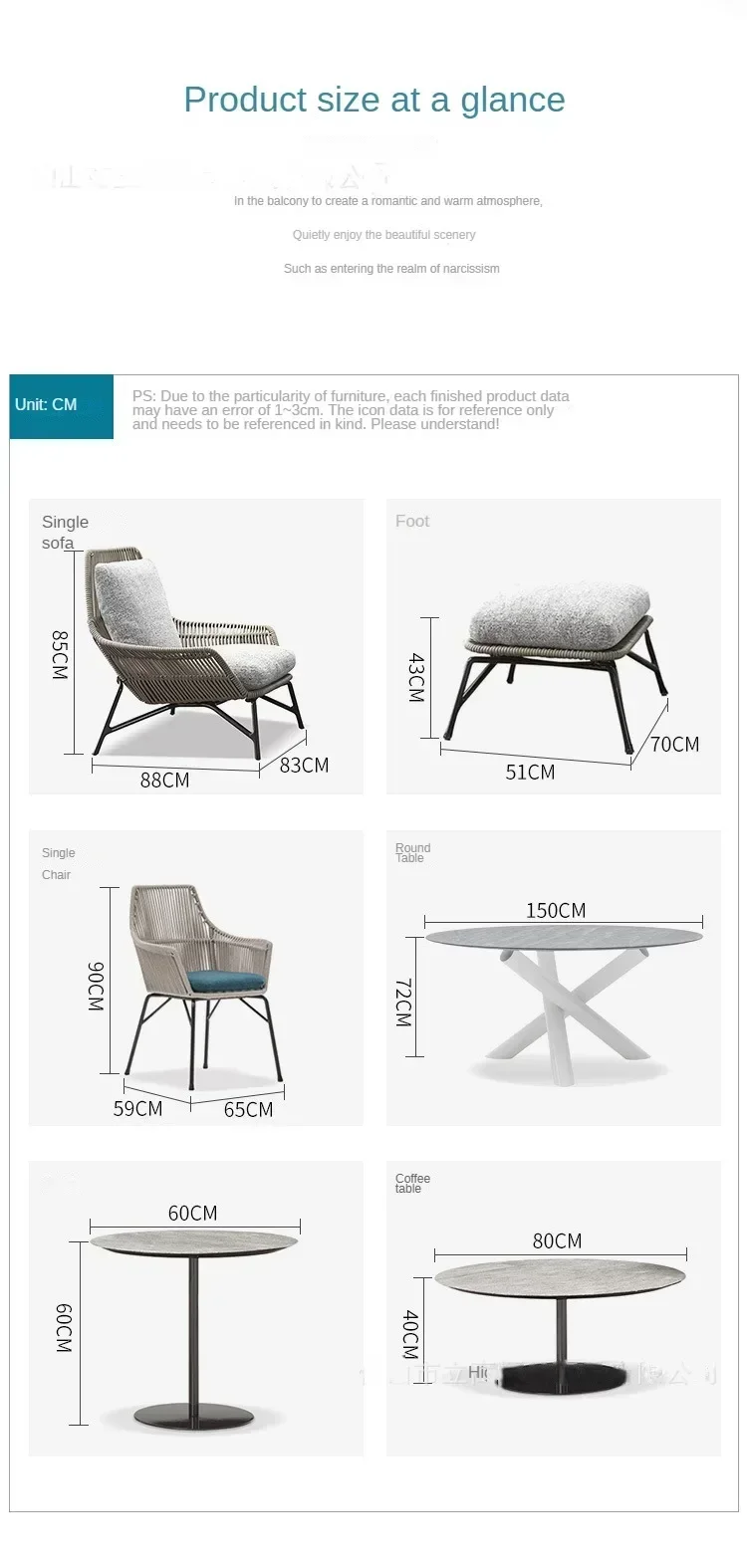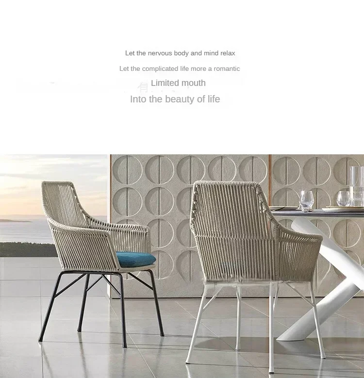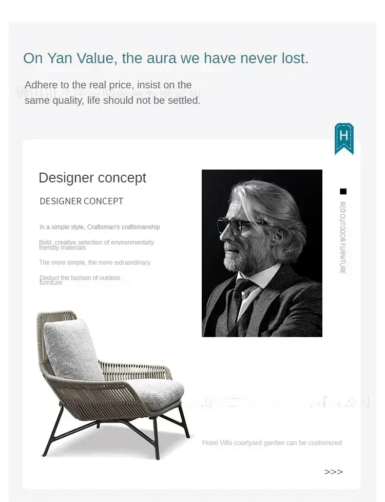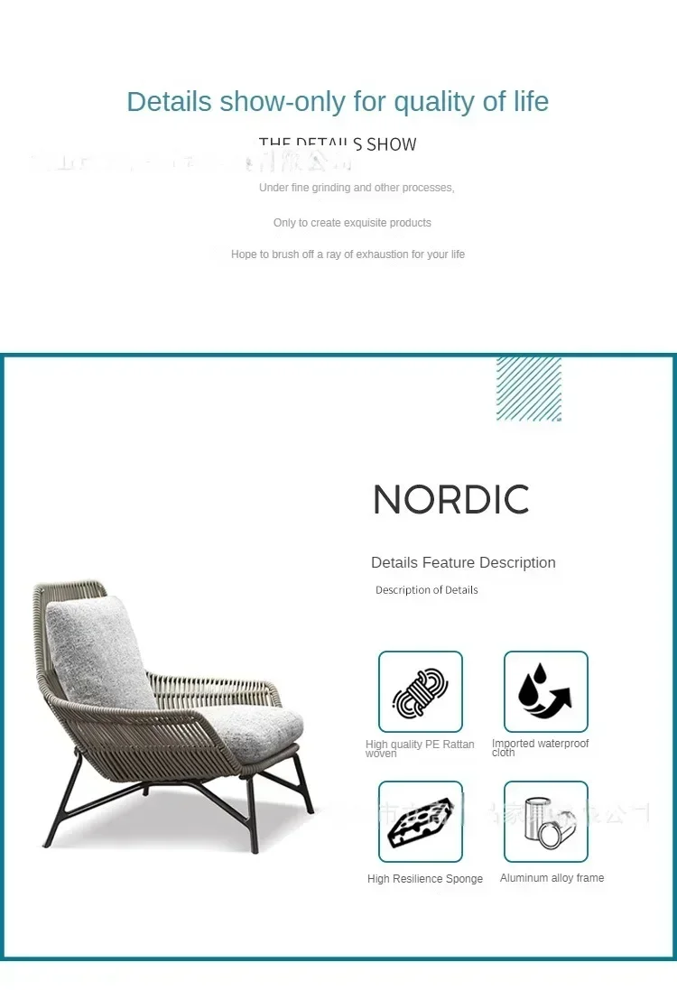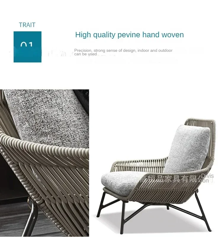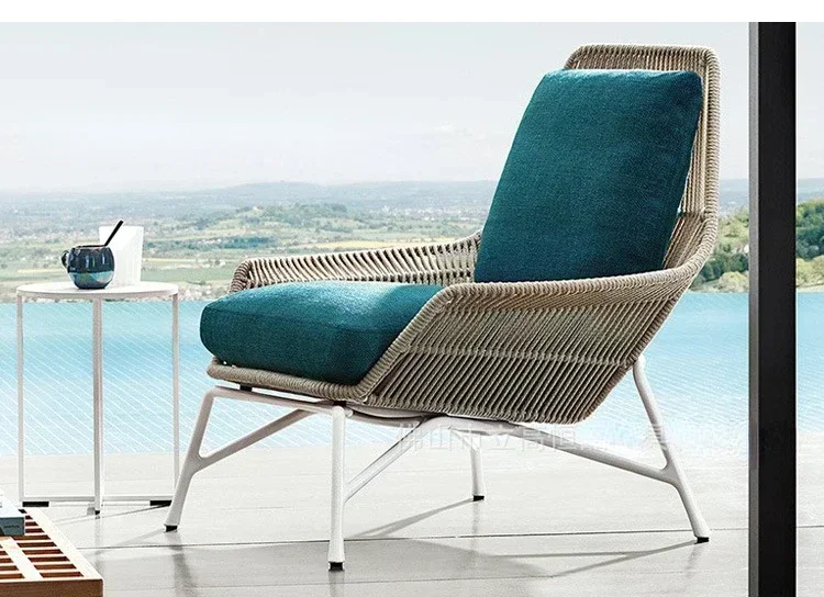 Nordic Outdoor Sofa, Simple and Casual Outdoor Garden Net, Red Vine Rope Woven Balcony Sofa Single Person Lounge Chair