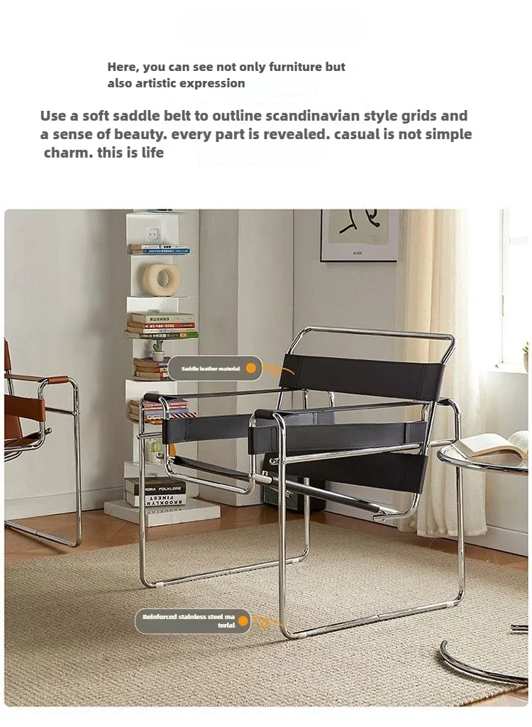 Nordic Vassili Leisure Chair Single Chair Medieval Industrial Style Network Red Bauhaus Saddle Leather Simple Photo Furniture