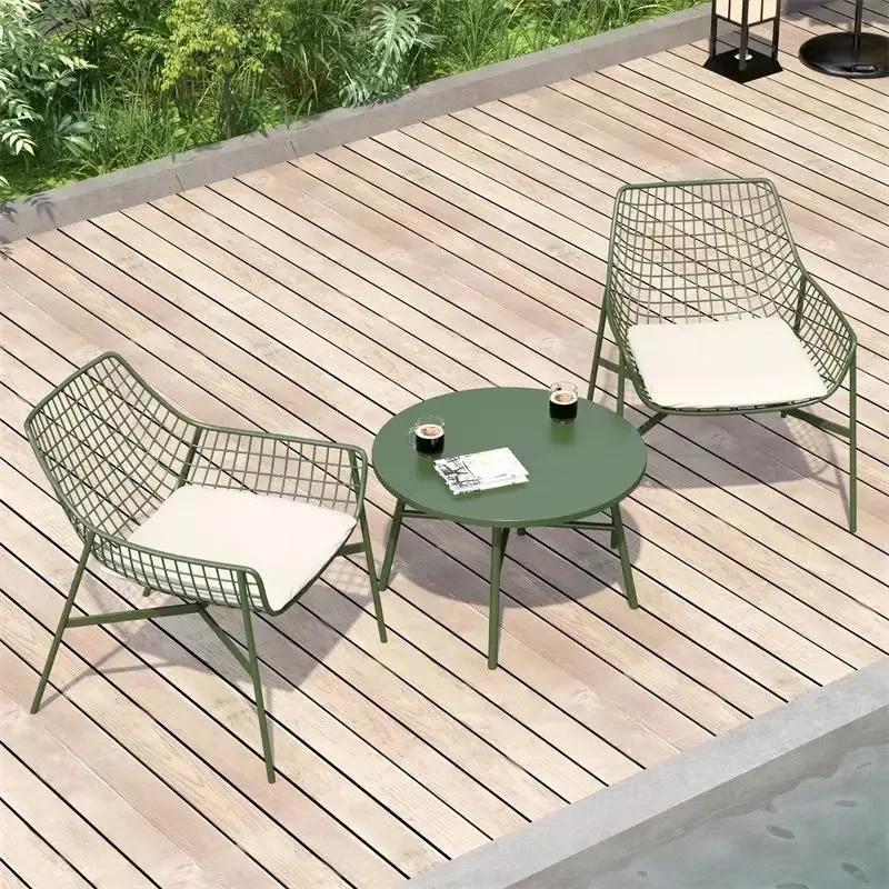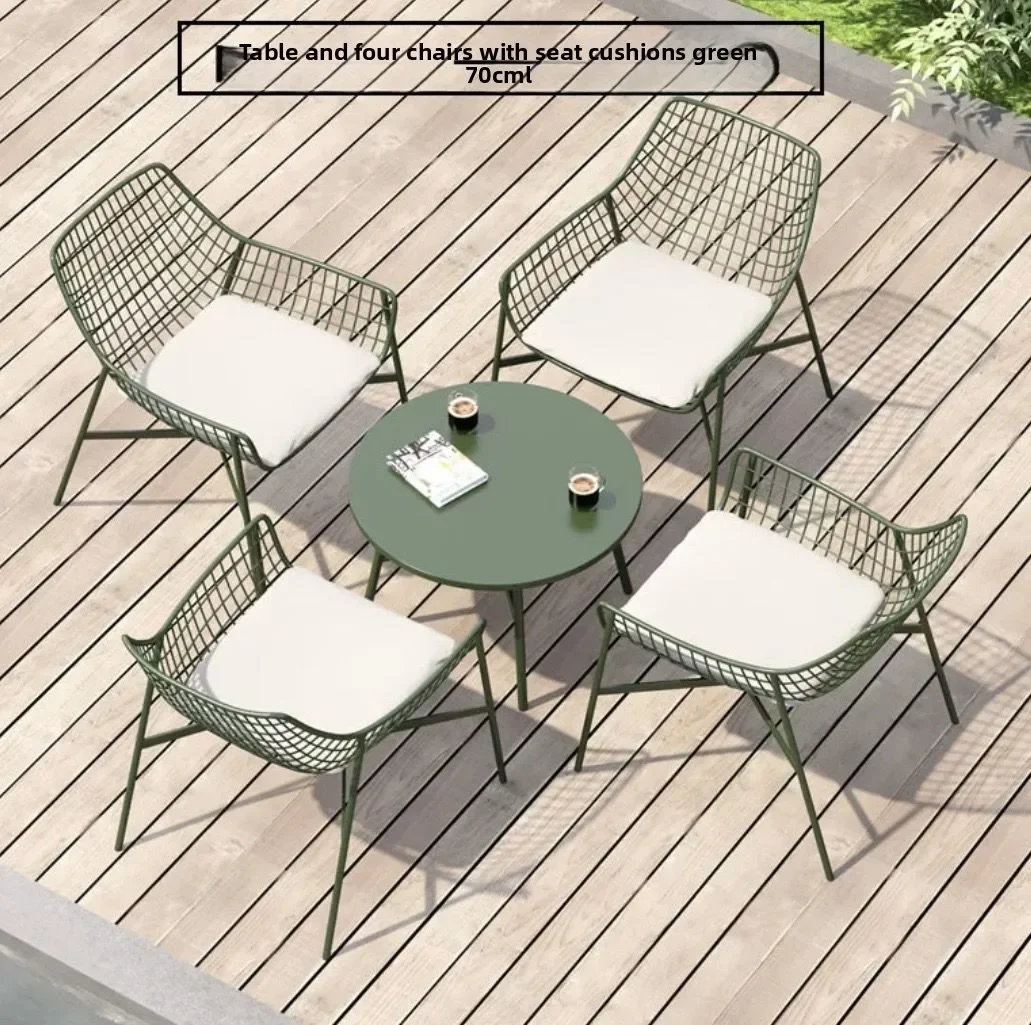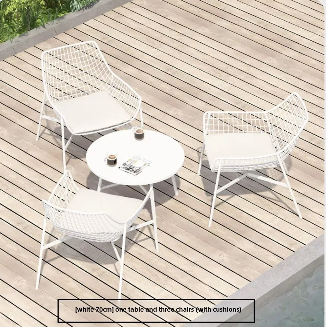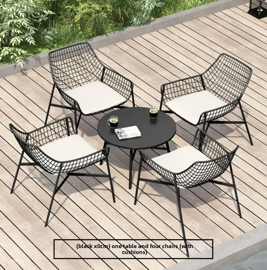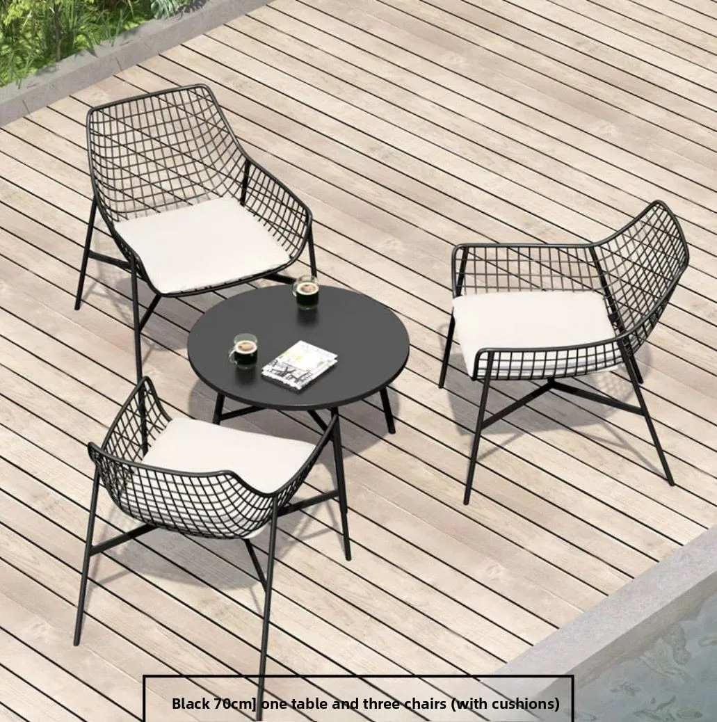 Outdoor Patio Table and Chair Set Minimalist Courtyard Balcony Gathering Viral Iron Round Grid Chairs Leisure Matching