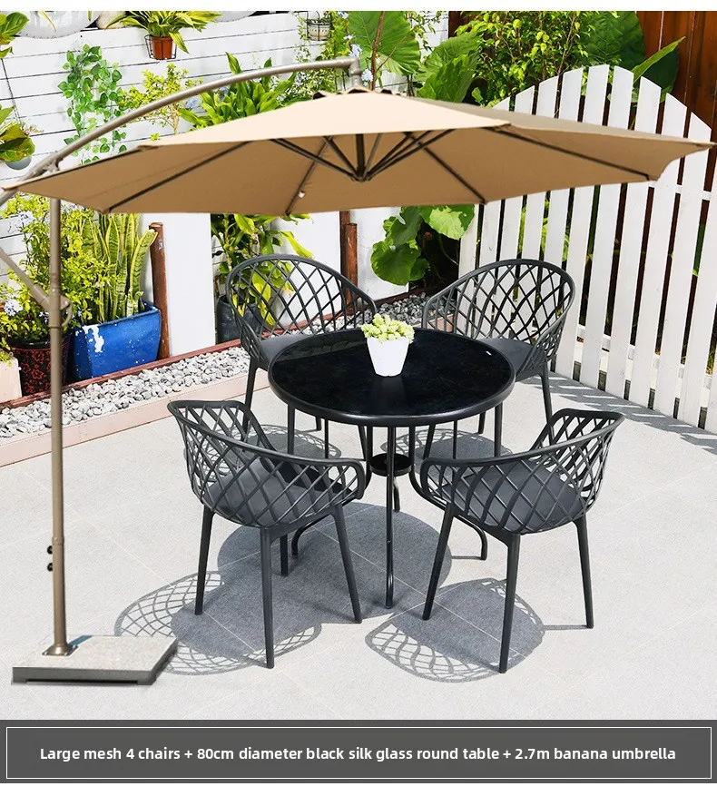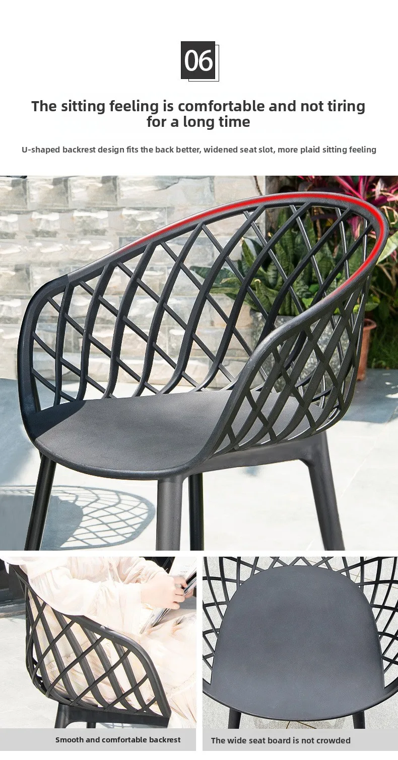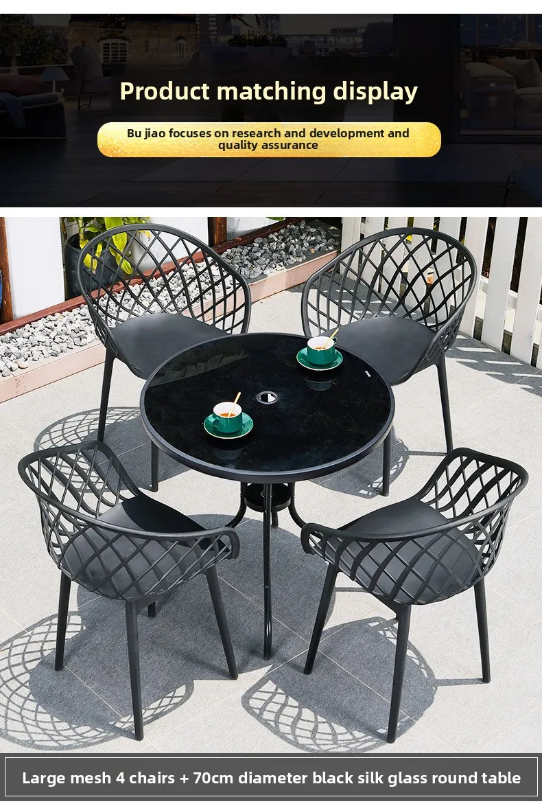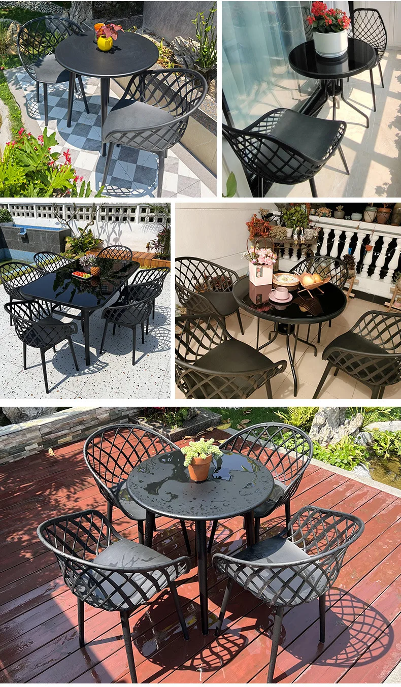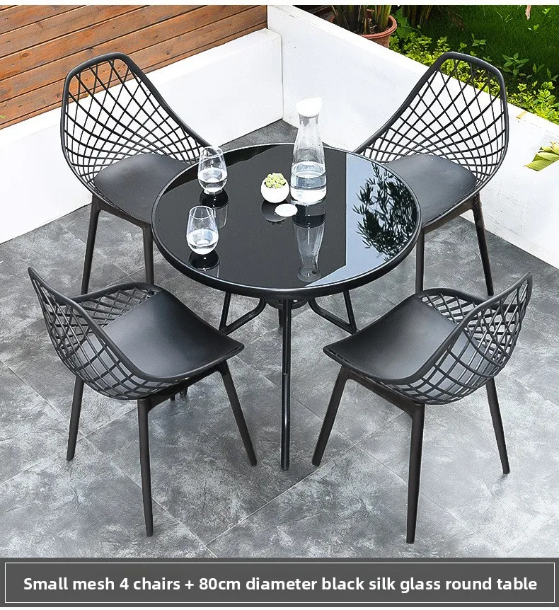 Outdoor Plastic Integral Slant Mesh Chairs Patio Balcony Trendy Milk Tea Shops Cafe Leisure Steel Table Set Durable Weatherproof