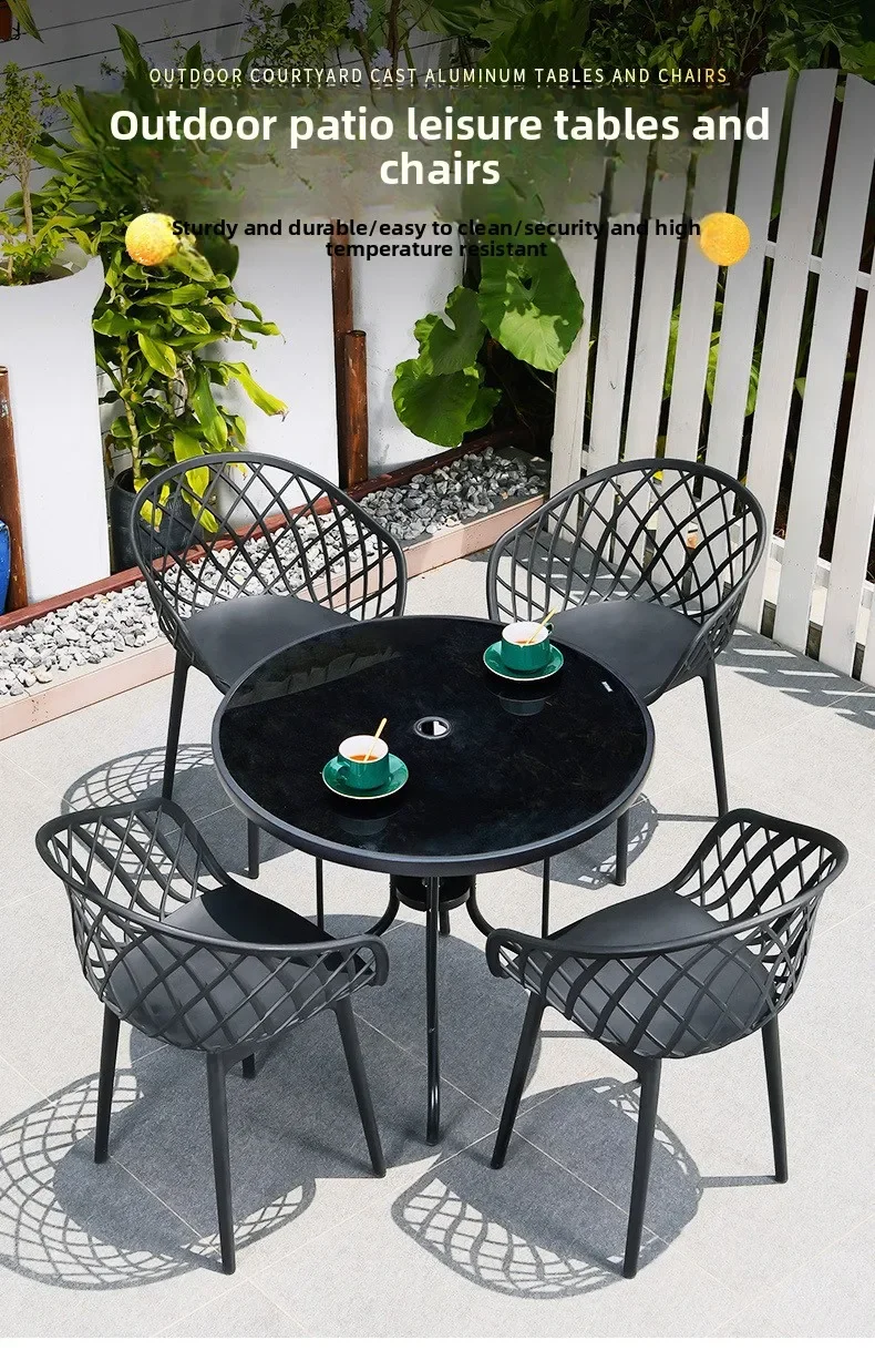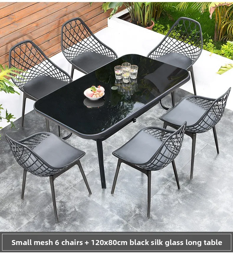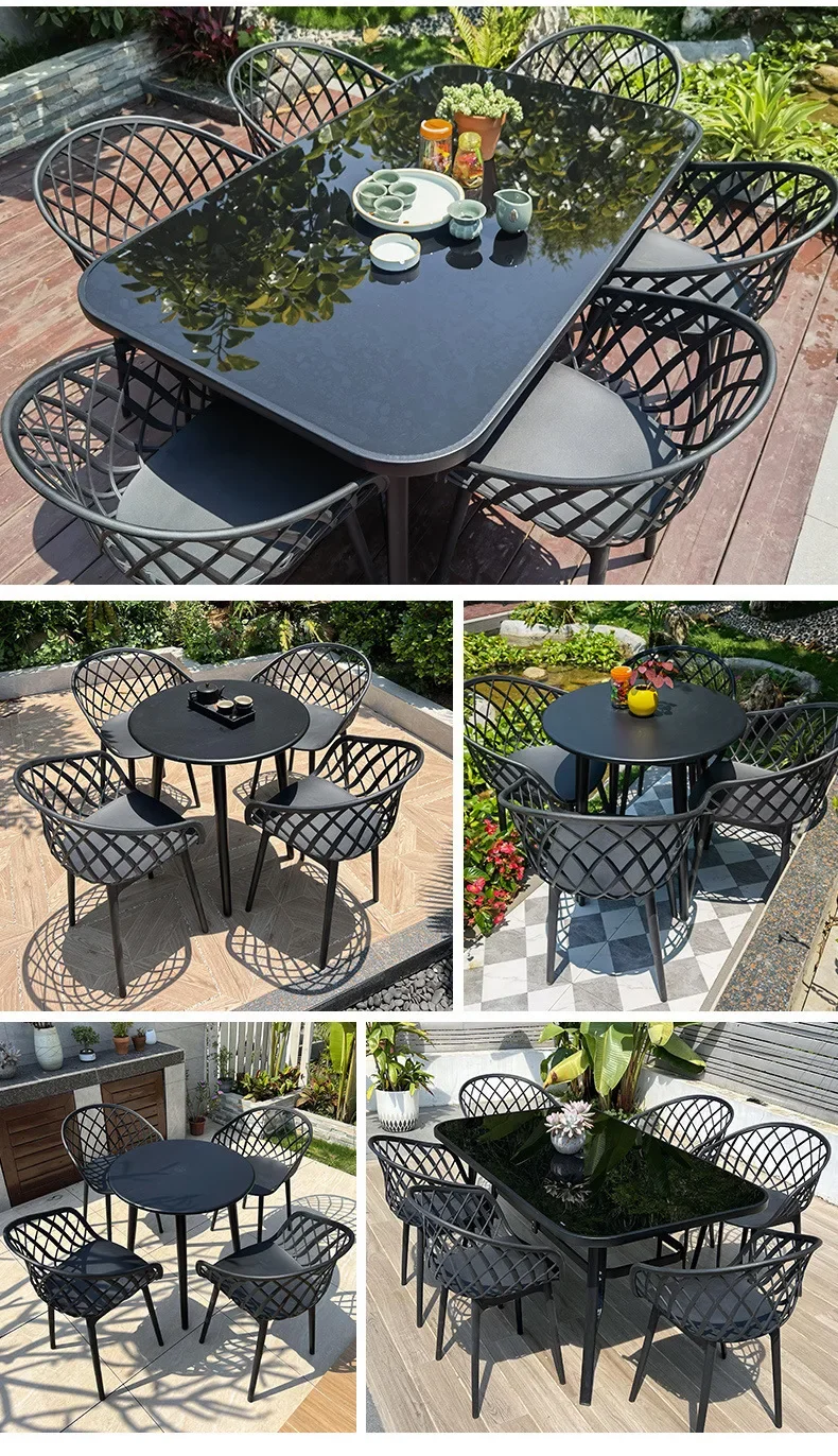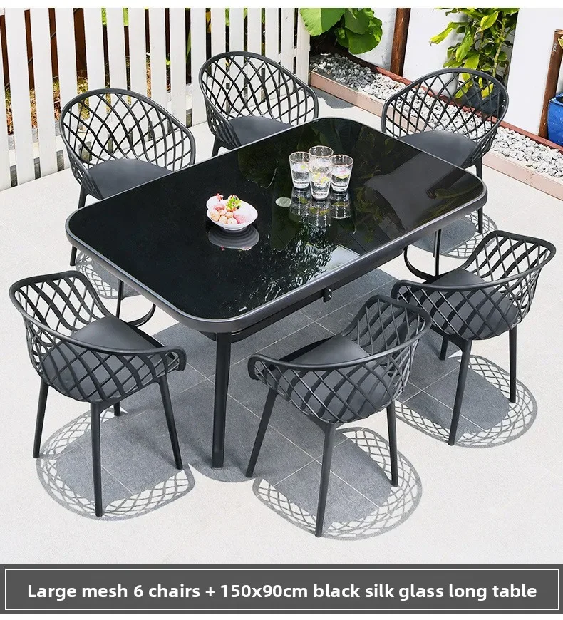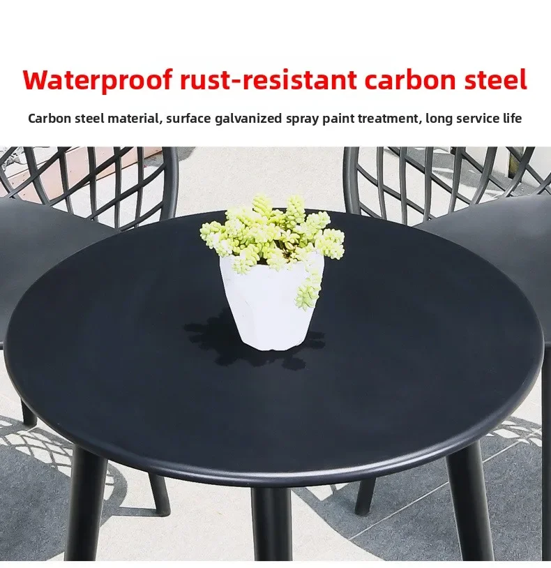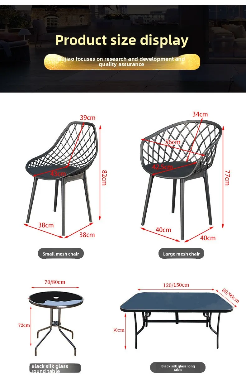 Outdoor Plastic Integral Slant Mesh Chairs Patio Balcony Trendy Milk Tea Shops Cafe Leisure Steel Table Set Durable Weatherproof