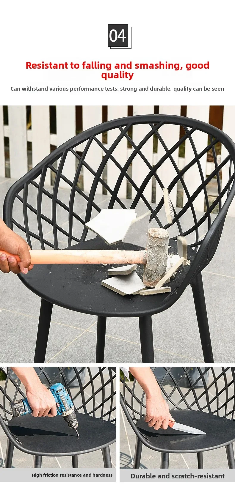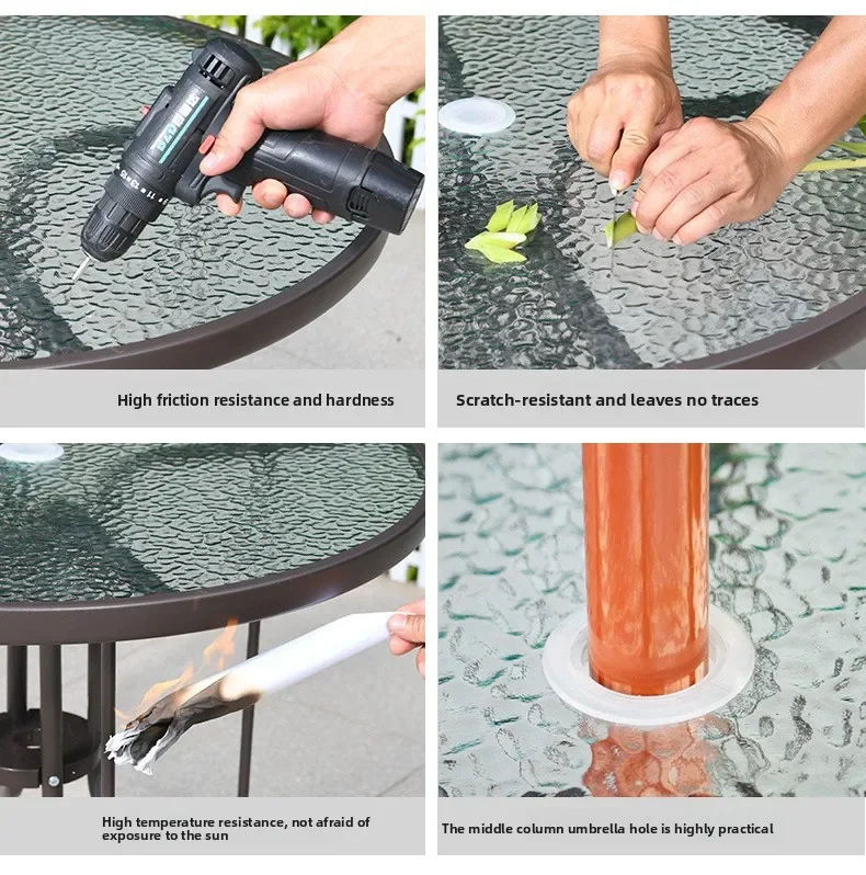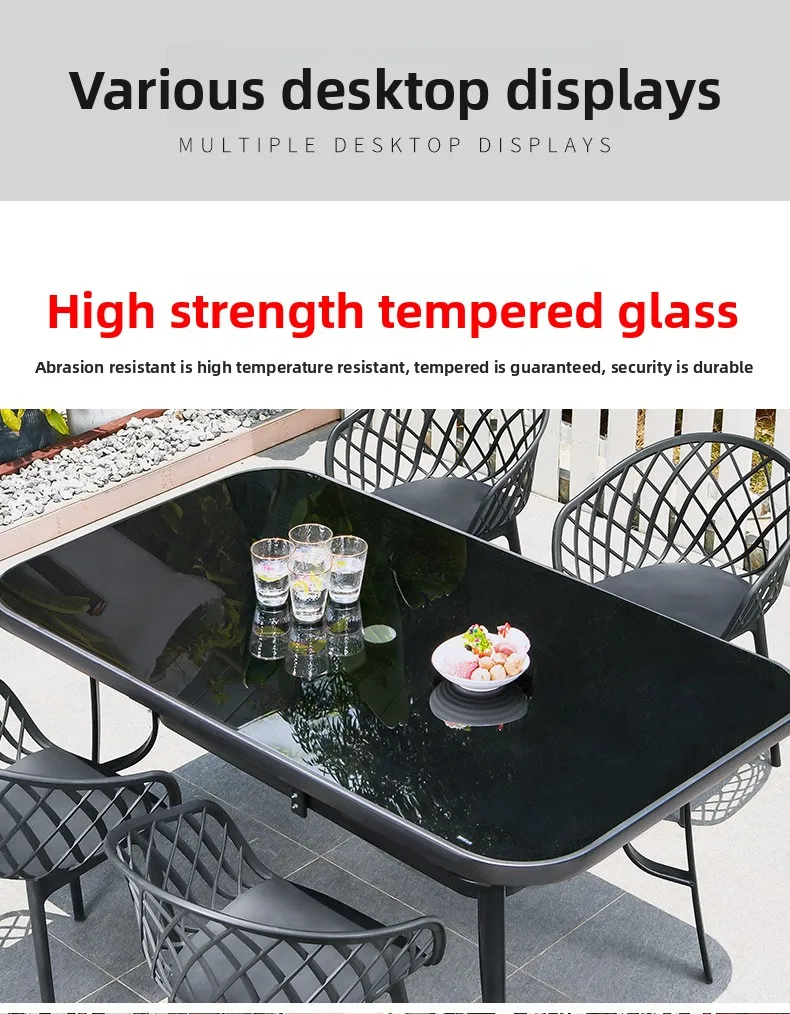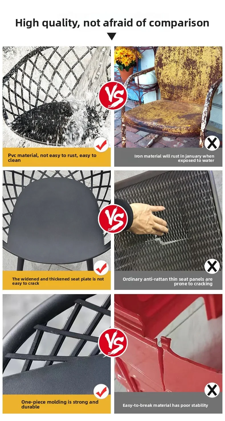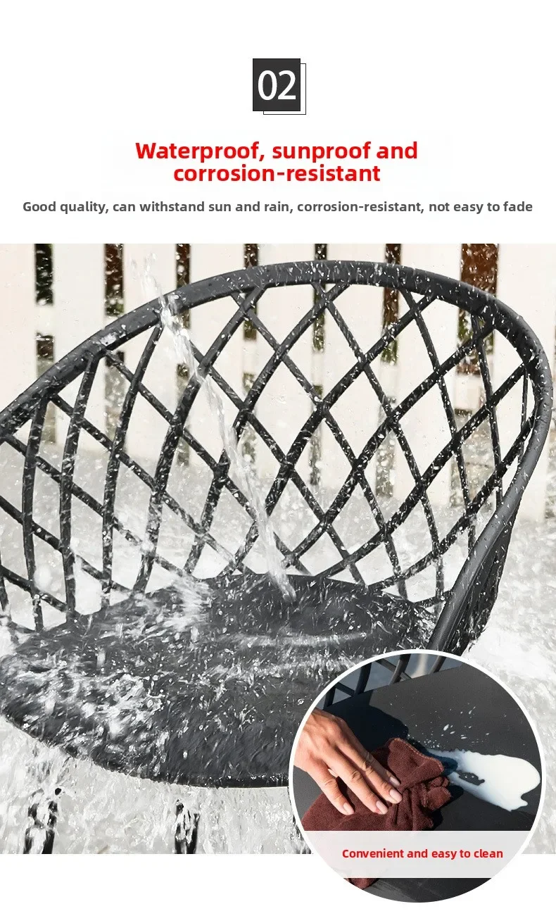 Outdoor Plastic Integral Slant Mesh Chairs Patio Balcony Trendy Milk Tea Shops Cafe Leisure Steel Table Set Durable Weatherproof