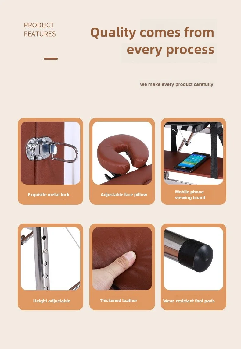 Portable Folding Massage Bed Stainless Steel Lifting Table for Home Beauty Salon Physiotherapy Moxibustion Treatment