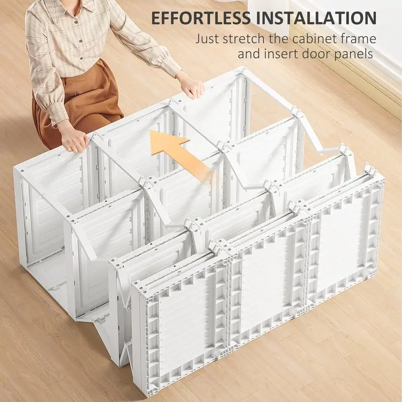 Load-Bearing Capacity: Our folding cabinet is built of polypropylene and ABS, which is more reliable than the fabric. No worry about deformation because each compartment can support up to 22 lbs.