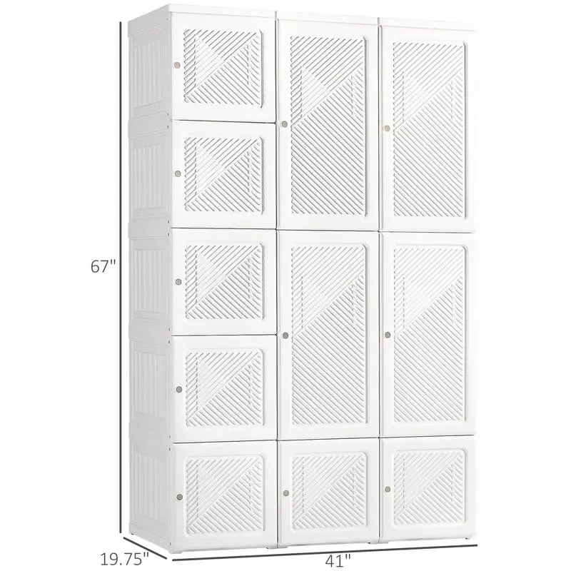 Portable Wardrobe Closet, Folding Armoire, Clothes Storage Organizer with 11 Cube Compartments, Hanging Rod, Magnet Doors,