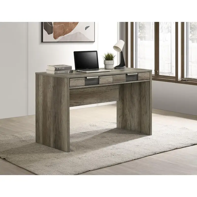 Product Name: 1pc Rustic Contemporary Desk Elegance Base Storage Two Drawers Wooden Home Office Furniture Brown / Gray