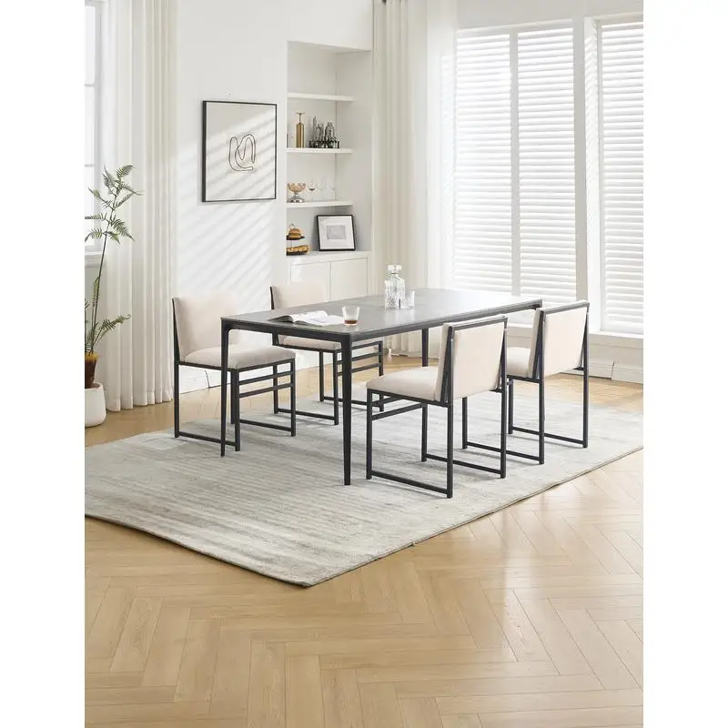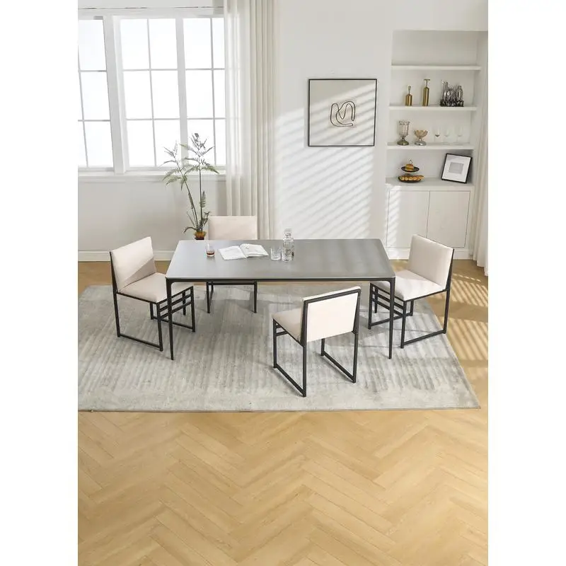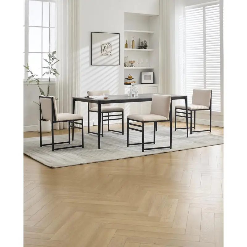 Product Name: Modern Dining Chairs set of 2, Upholstered Linen cushions and backrest with minimalist craft iron racks IVORY