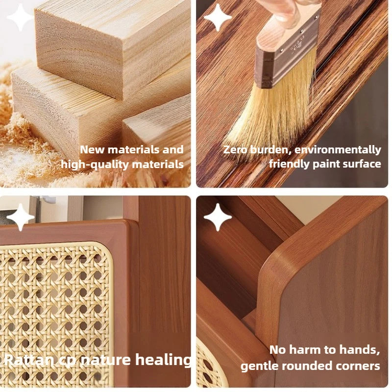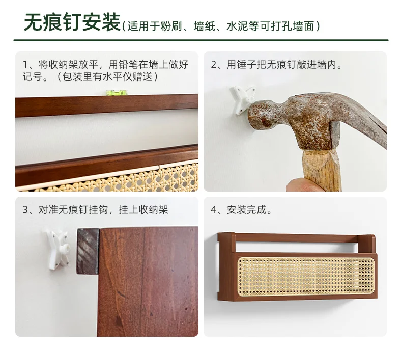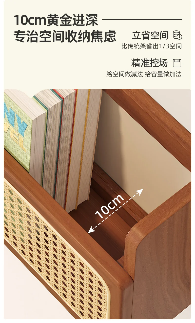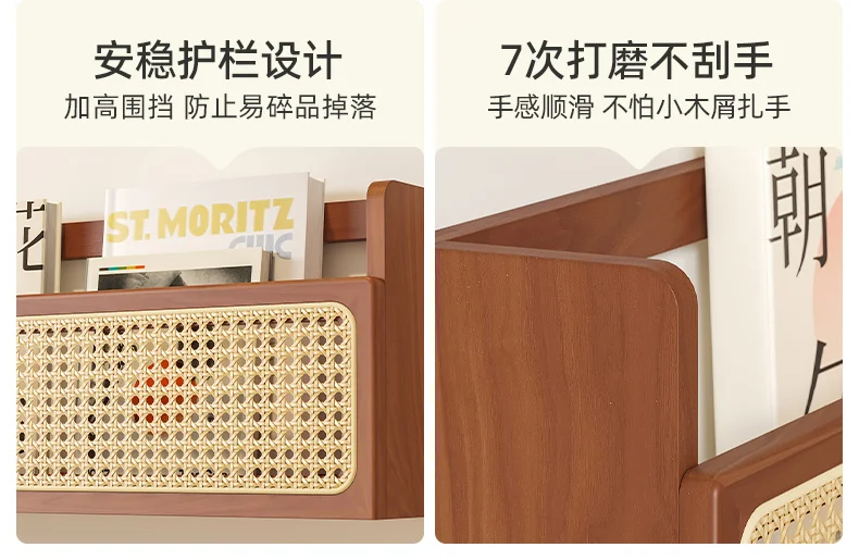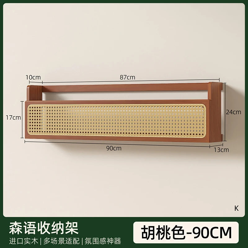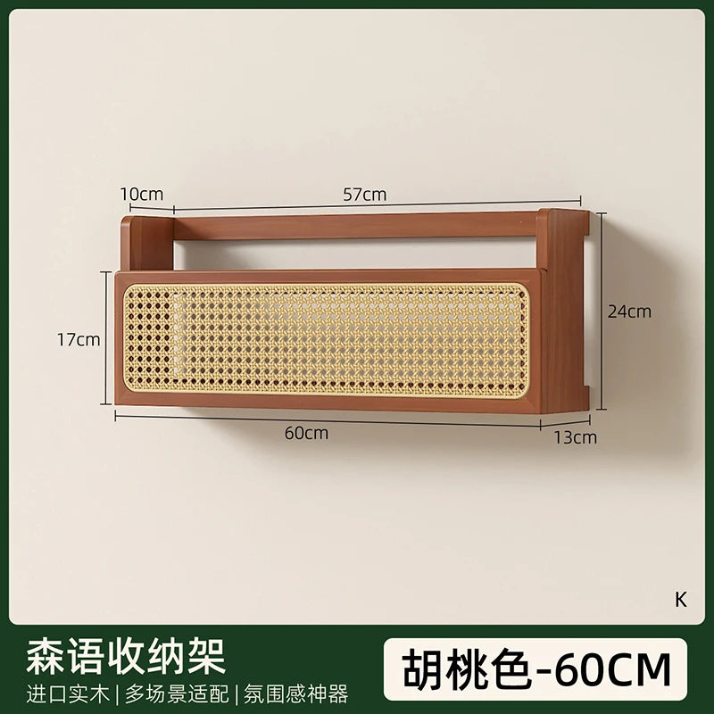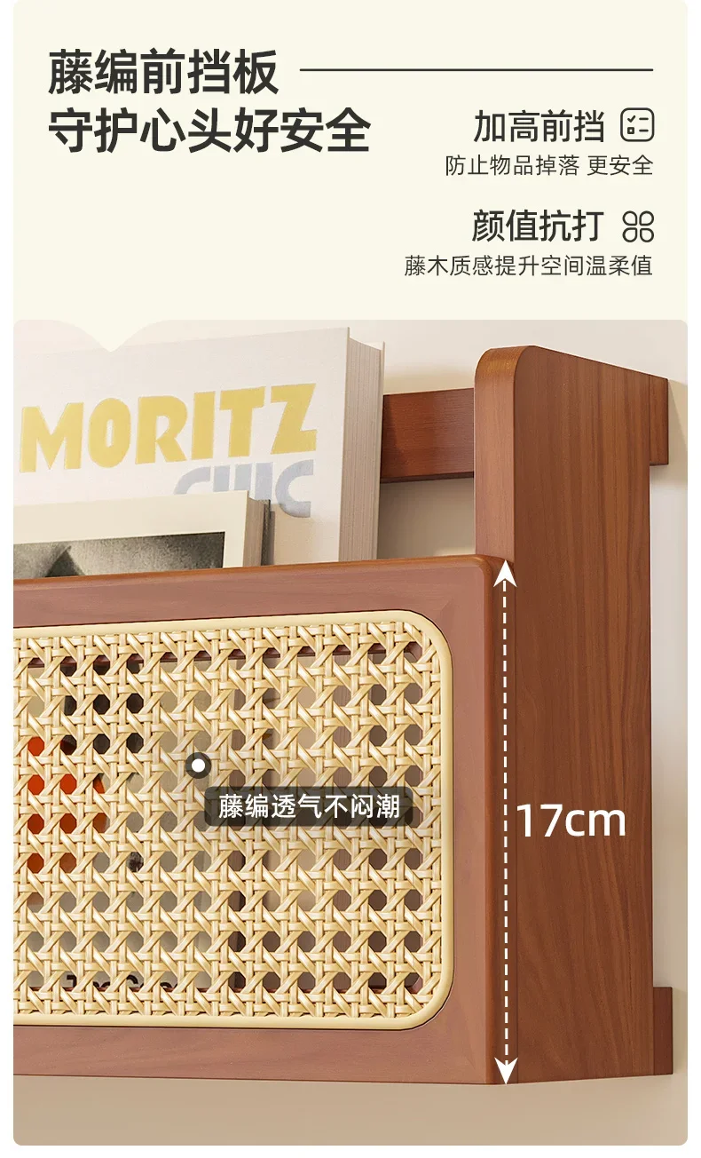 Simple Rattan Magazine Rack Vintage Bookshelf for Living Room Mid-Century Wall Mounted Book Organizer Space-saving Storage Rack