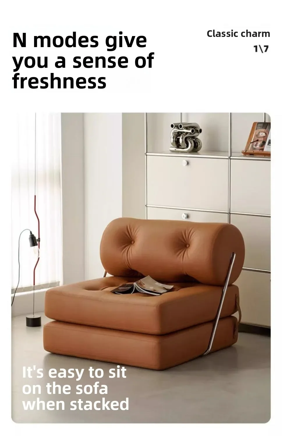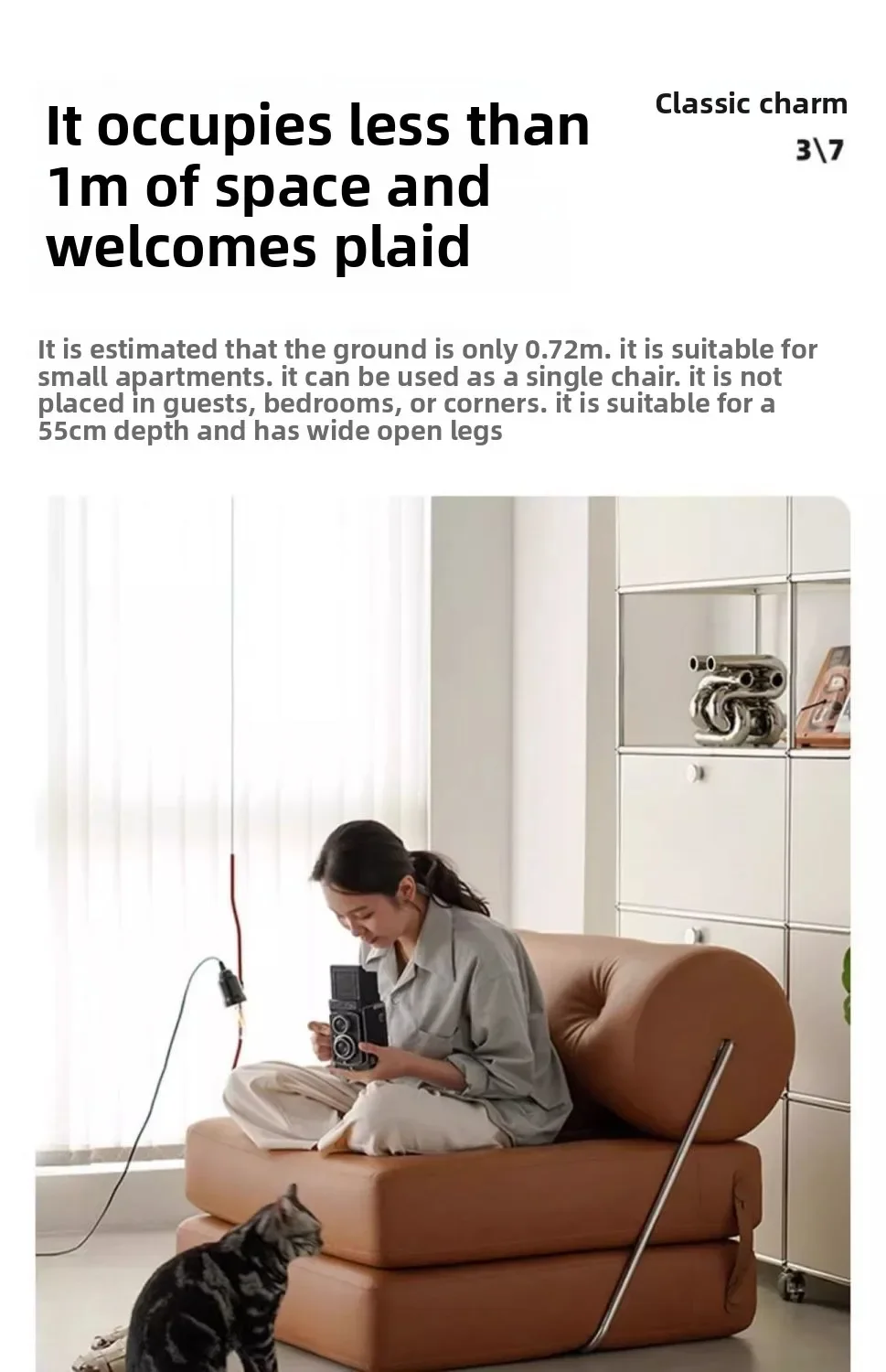 Small Space Living Room Modern Accent Chair Convertible Sofa Bed Modular Cream Style Bean Comfy Lounge Seat Compact Apartment
