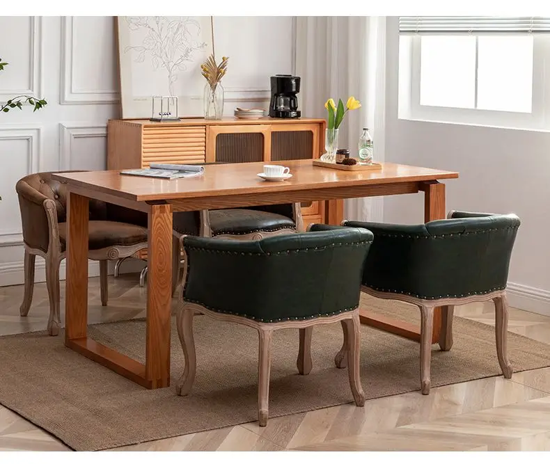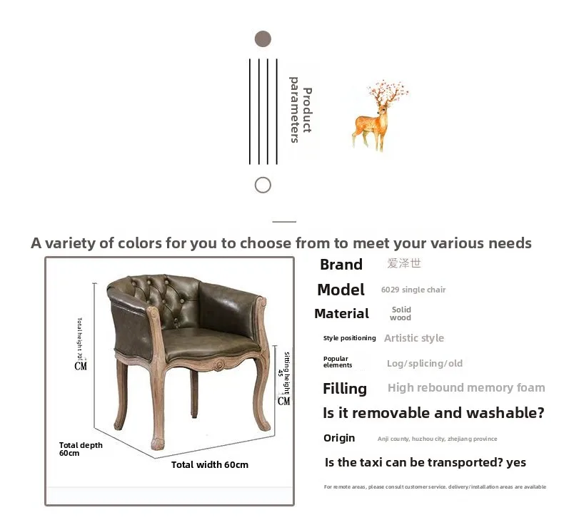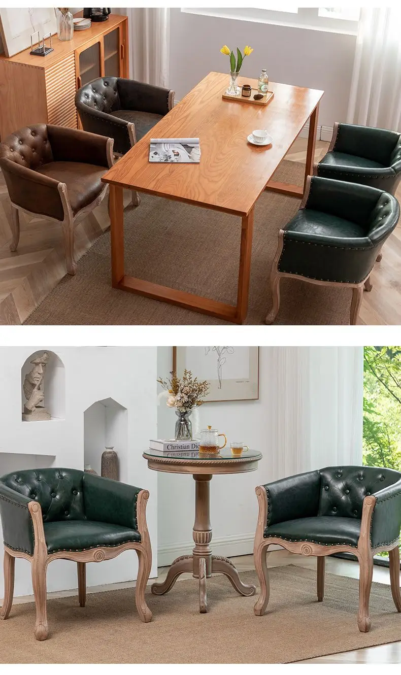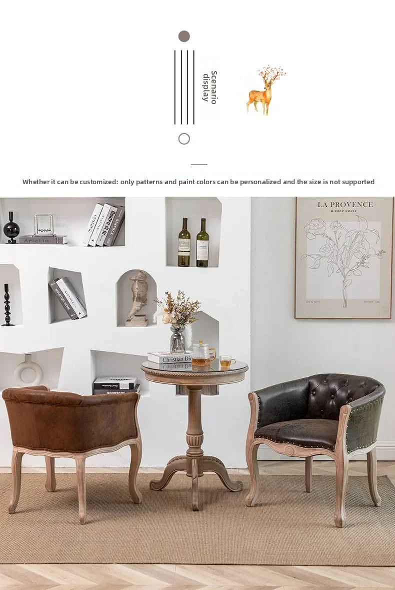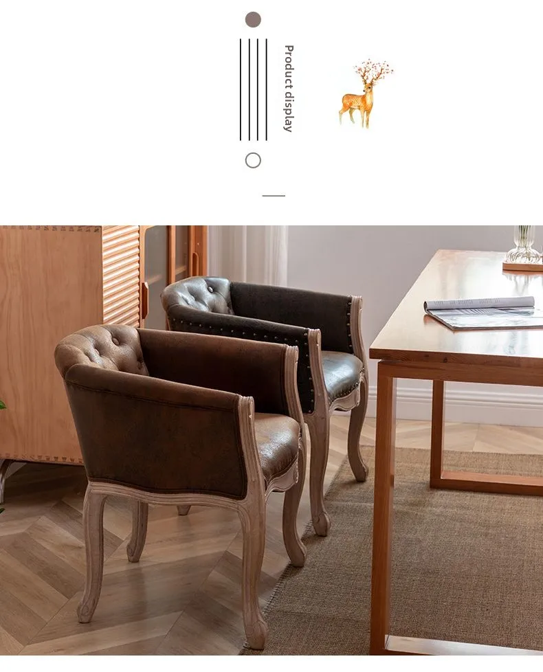 Solid Wood Dining Chairs Retro American Vintage Farmhouse Dining Armchairs Living Room Home Use Single Seat Sofa Chairs