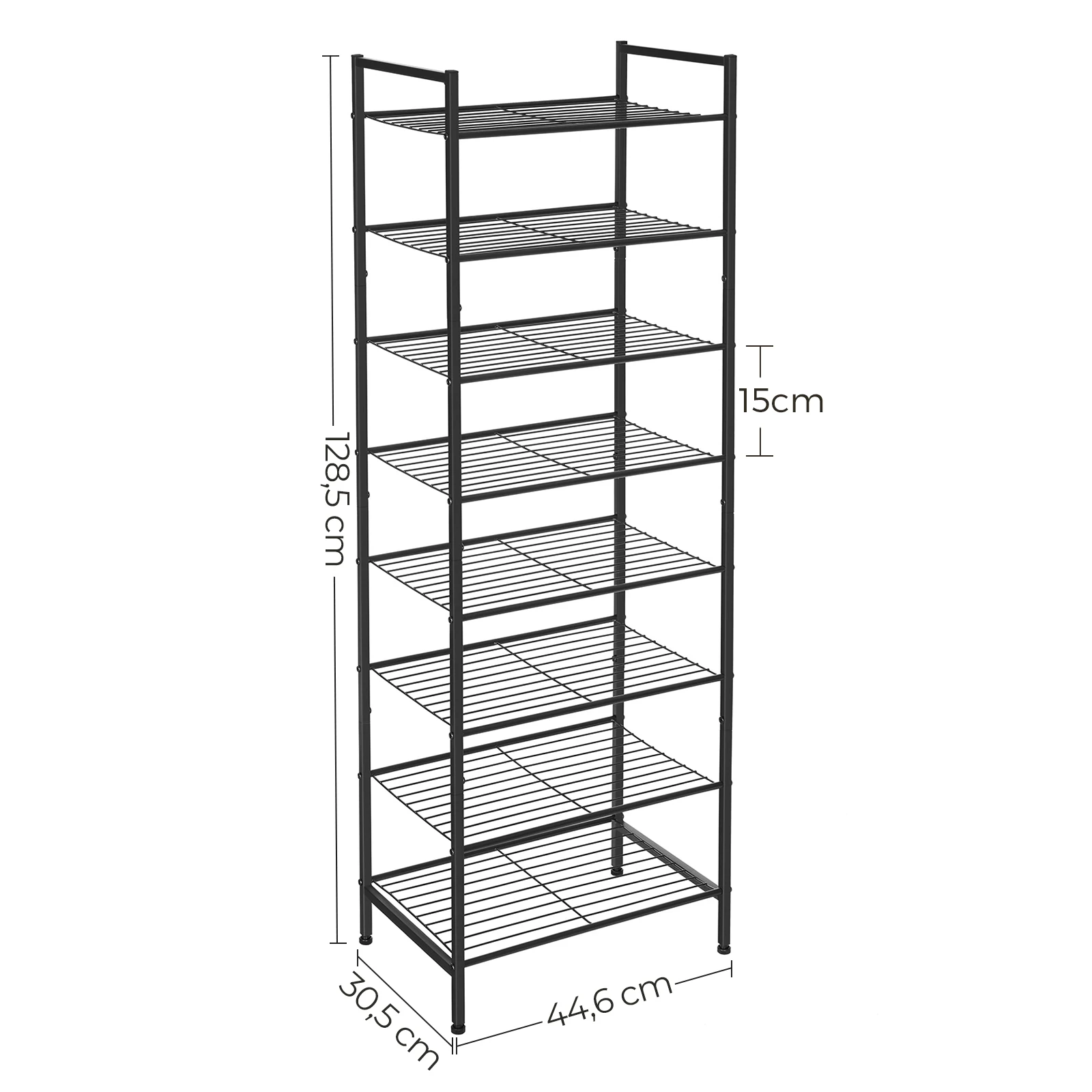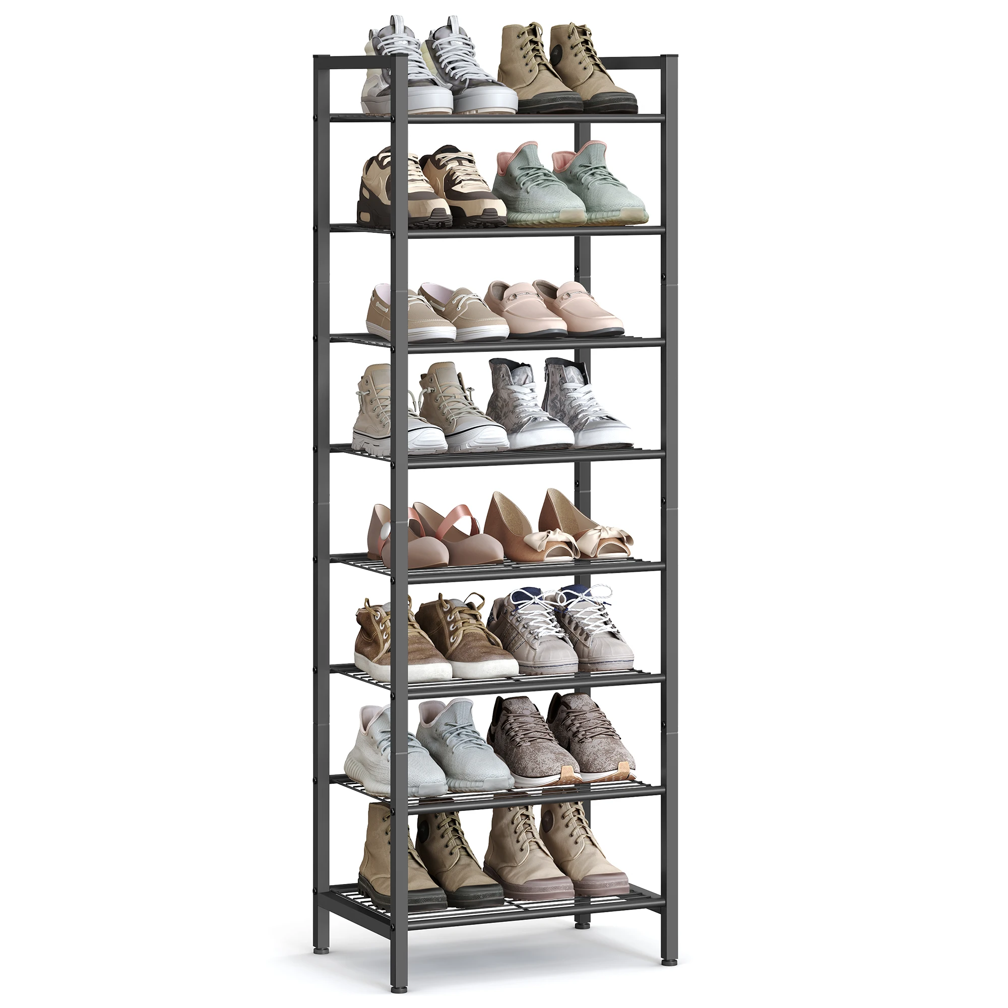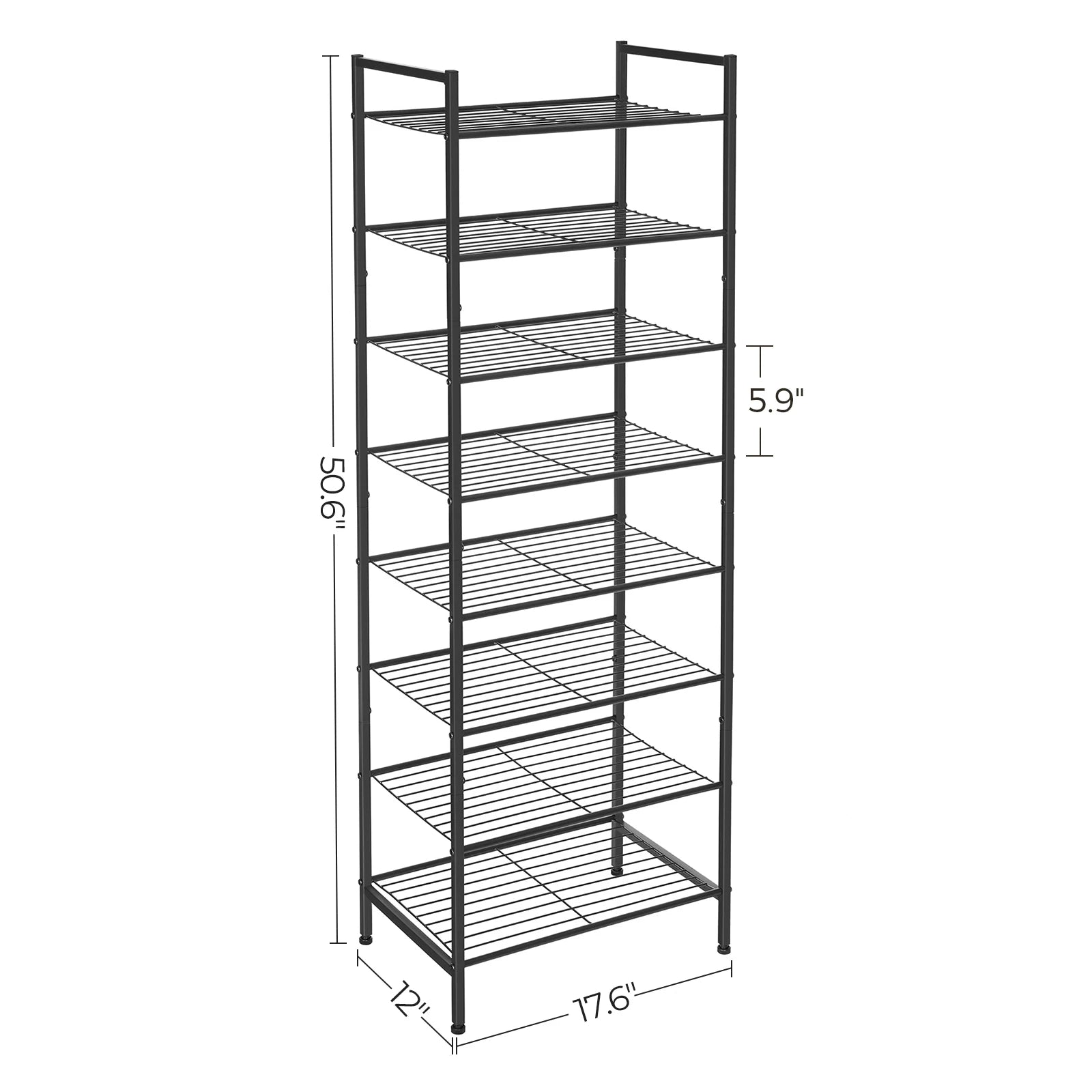 SONGMICS Narrow Shoe Rack, Sturdy 8 Tier Metal Tall Shoe Rack Shelf, Slim Shoe Storage Organizer for Closet Entryway Small Space