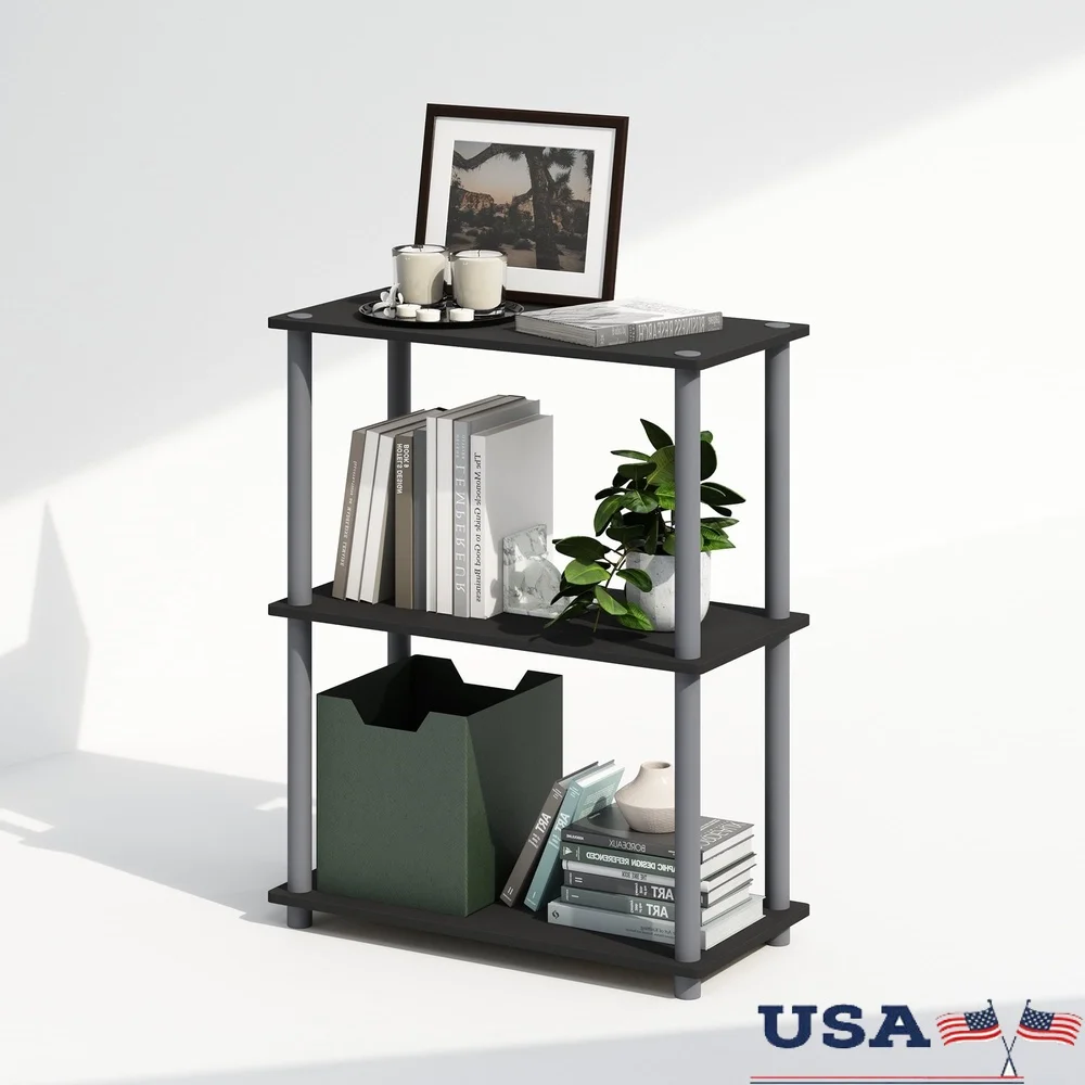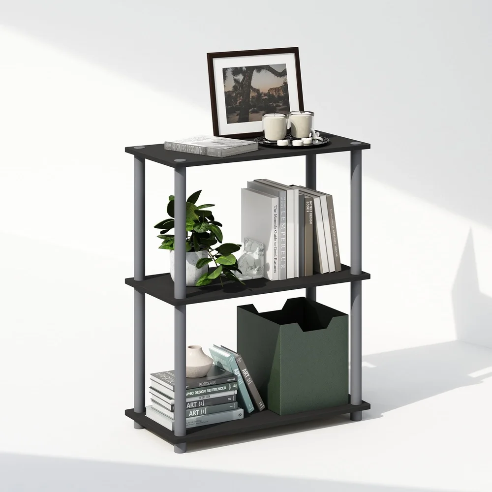 Turn-N-Tube 3-Tier Multipurpose Compact Display Rack Shelving Unit Bookcase Black/Grey